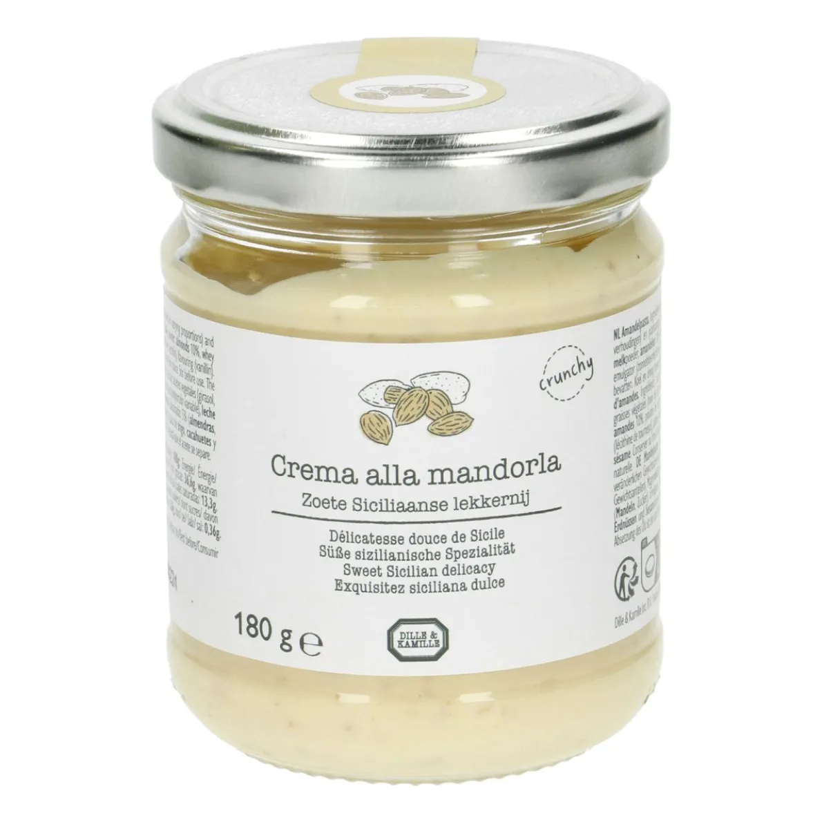 In Sicilië groeien de lekkerste amandelen en dat proef je in deze geurige, romig zoete pasta. Doe zoals de Sicilianen en eet de ‘Crema alla mandorla’ op een croissantje bij je ontbijt of als vulling en afwerking van taart, cake of crêpe. Of laat je fantasie de vrije loop!
