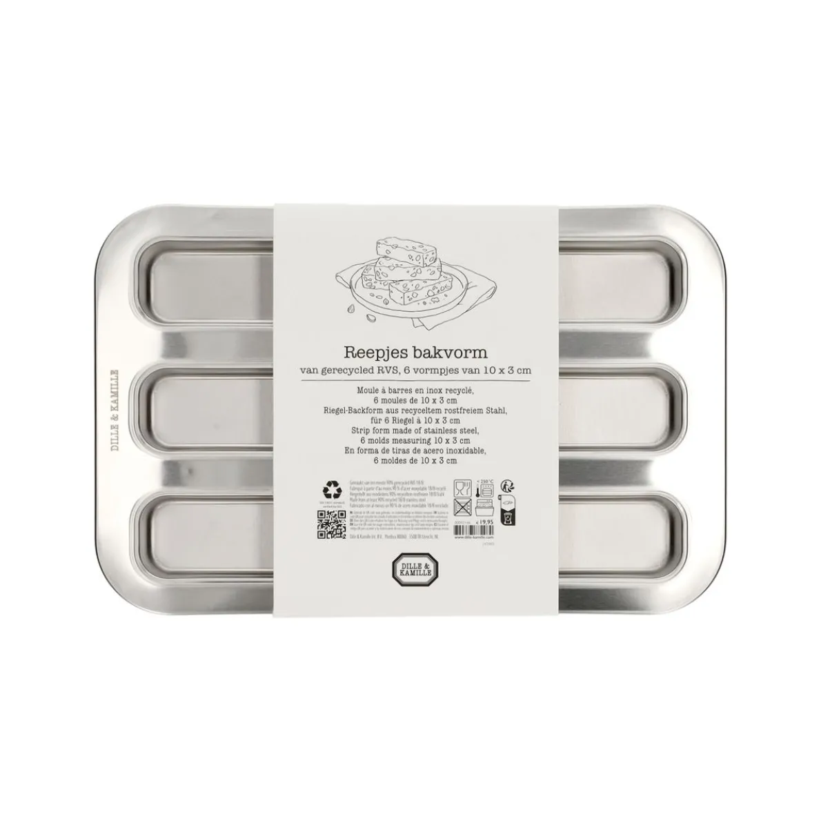 Bakvorm voor 6 reepjes. Ideaal voor het maken van cakejes, chocoladerepen, maar ook voor bijvoorbeeld granola bars, mueslirepen, gebakjes, zeepjes, nougat, of fudge. Geschikt voor zowel koude als warme bereidingen. De vorm mag ook in de koelkast of vriezer. Vet de vorm voor het bakken goed in met bv. boter en bestuif hem vervolgens met wat bloem. Zorg dat de boter in alle hoekjes komt zodat de reepjes makkelijk uit de vorm komen na het bakken.