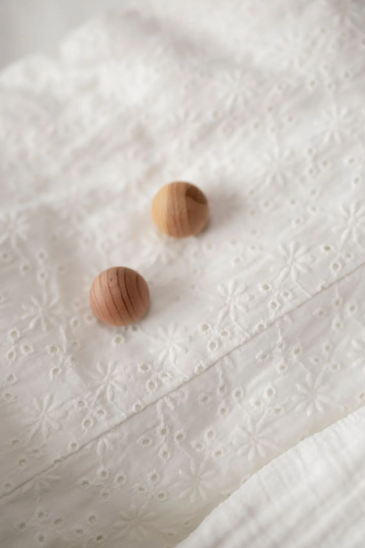 Het hout van Rode ceder ruikt niet alleen heerlijk, het neemt ook vocht op en houdt je kast fris. Ideaal als je in de zomermaanden je winterkleding opbergt. Leg deze cederhouten balletjes tussen je wollen truien en linnengoed in de kast. Maar ook onder kussens en matrassen, in opbergdozen en koffers om alles goed droog en fris te houden. Tip: Wordt de geur minder? Schuur het hout dan even licht op.