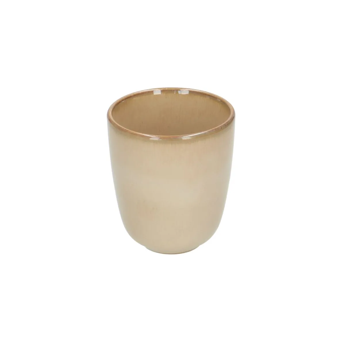 Deze zandkleurige beker hoort bijonzeserviesserie van steengoed met reactief glazuur. Door ditglazuur ontstaat een bijzonder kleurpatroon waardoor ieder item er uniek uitziet en het servies extra glans geeft aan een mooi gedekte tafel.