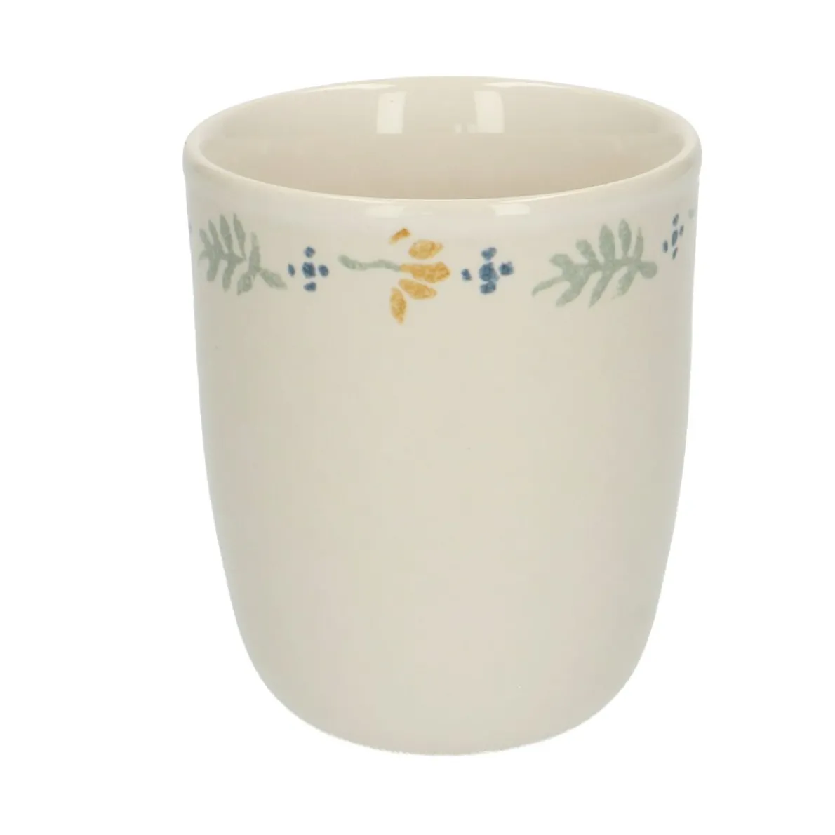 Met deze fijne beker geniet je nog meer van je kop koffie, thee of (chocolade)melk. Leuk als cadeautje, samen met bv. een zakje thee en een lekkere reep chocolade.Deze beker is onderdeel van een serviesserie. Een mooi servies van steengoed bedrukt met strooitakjes. Steengoed is een extra sterke soort aardewerk. Het dessin is een eigen ontwerp van Dille & Kamille.