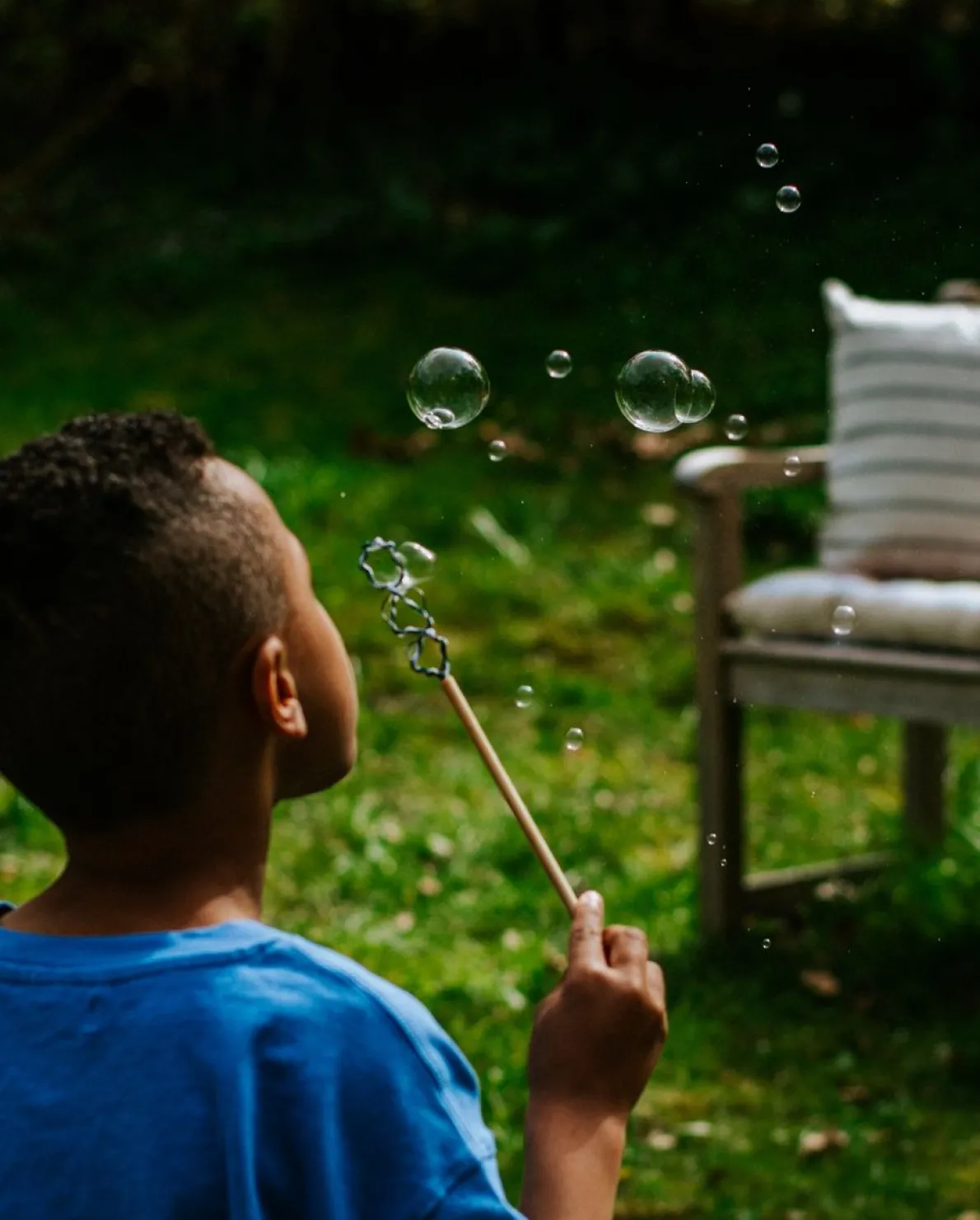 Dat is en blijft leuk, bellen blazen! Met dit bellenblaasstokje, plus natuurlijk een goed sopje, maak je de mooiste zeepbellen. Zo werkt het: meng 1/2 beker warm water met 1/2 beker afwasmiddel en 1 eetlepel glycerine. Goed doorroeren, de ringen van het stokje erin dopen en blazen maar!