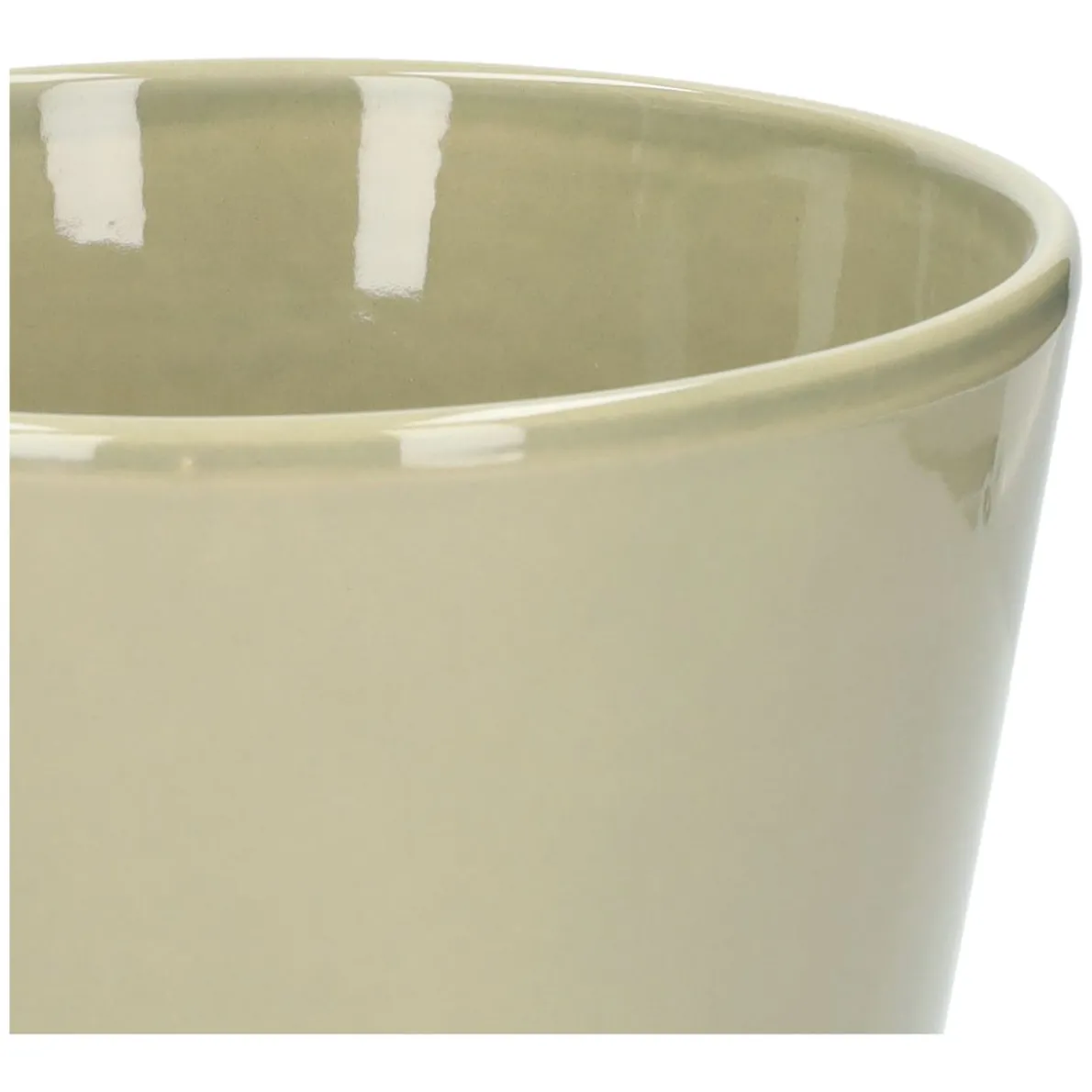 Zachtgroene bloempot voor kamerplanten, aardewerk. Hoogte 15 cm, Ø bovenkant, 17,5 cm, Ø onderkant, 12,5 cm.