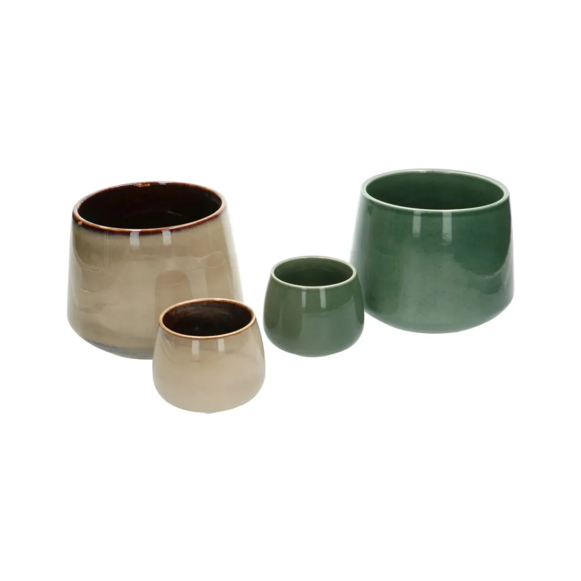 Een mooie plant komt in deze stijlvolle bloempot nog beter tot zijn recht. De pot is afgewerkt met een zandkleurig reactief glazuur wat een bijzonder effect geeft.