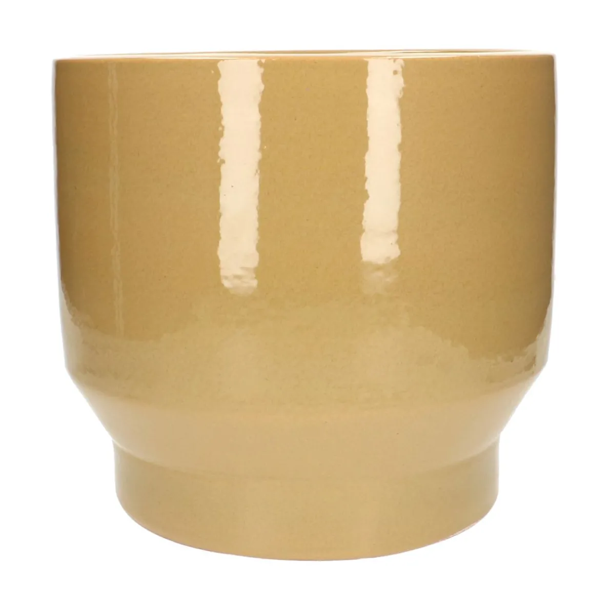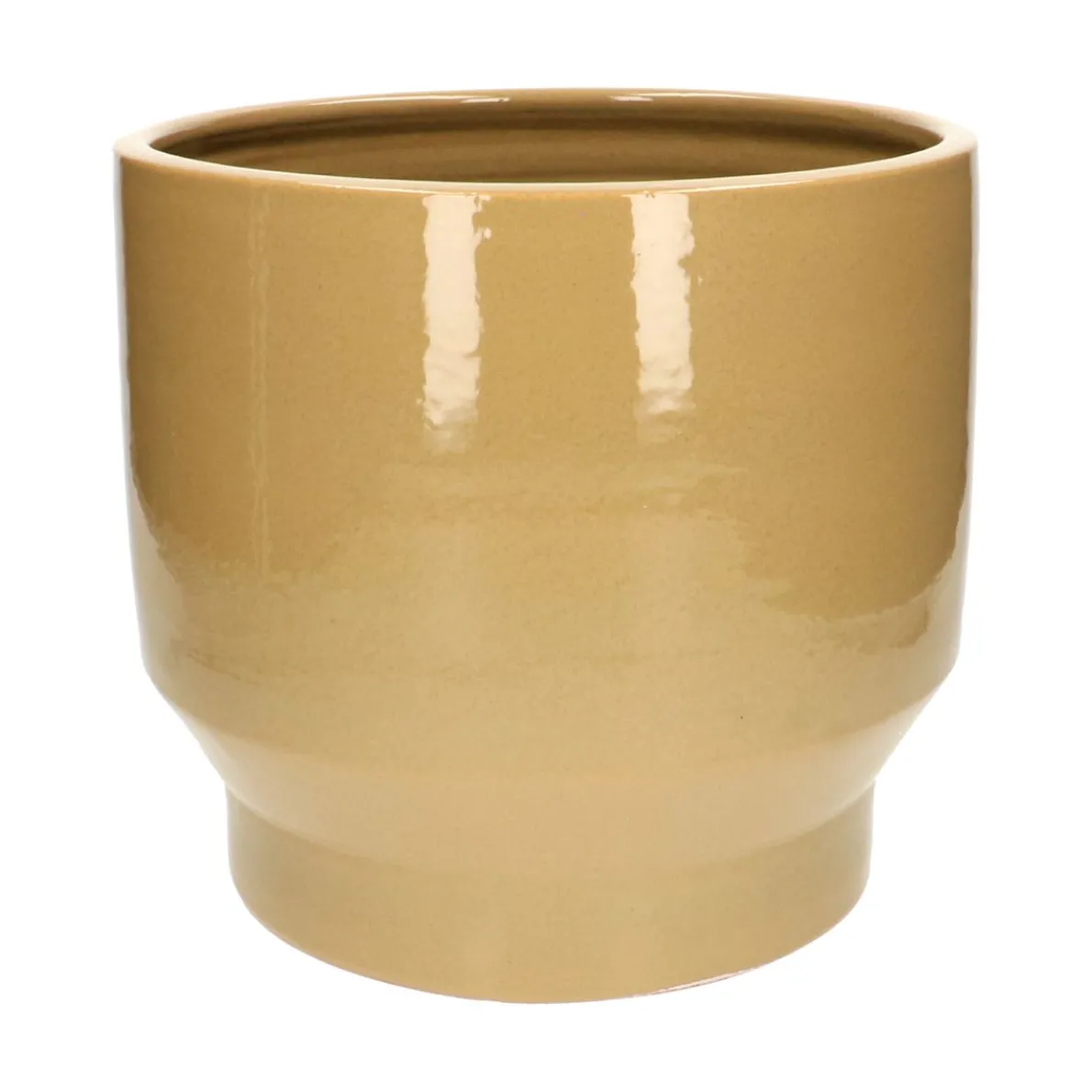 Grote bloempot van geglazuurd aardewerk in een zachte karamel kleur. Voor een speels effect zet je meerdere potten in diverse maten en kleuren bij elkaar.