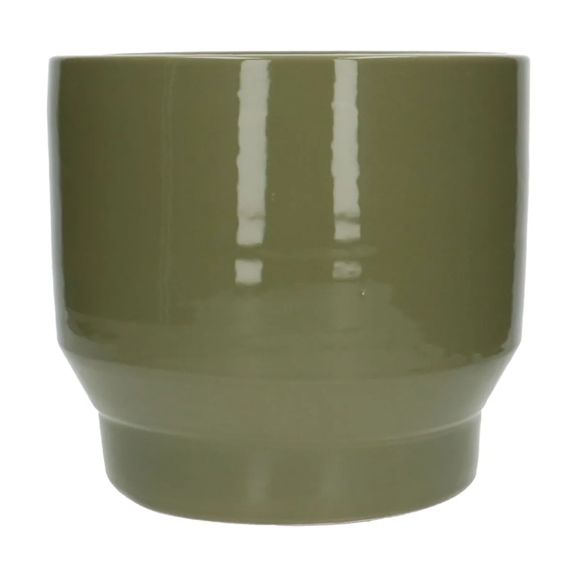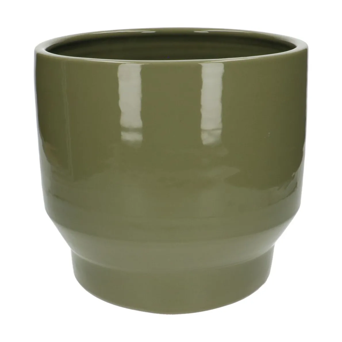 Grote bloempot van geglazuurd aardewerk in een fris saliegroene kleur. Voor een speels effect zet je meerdere potten in diverse maten en kleuren bij elkaar.