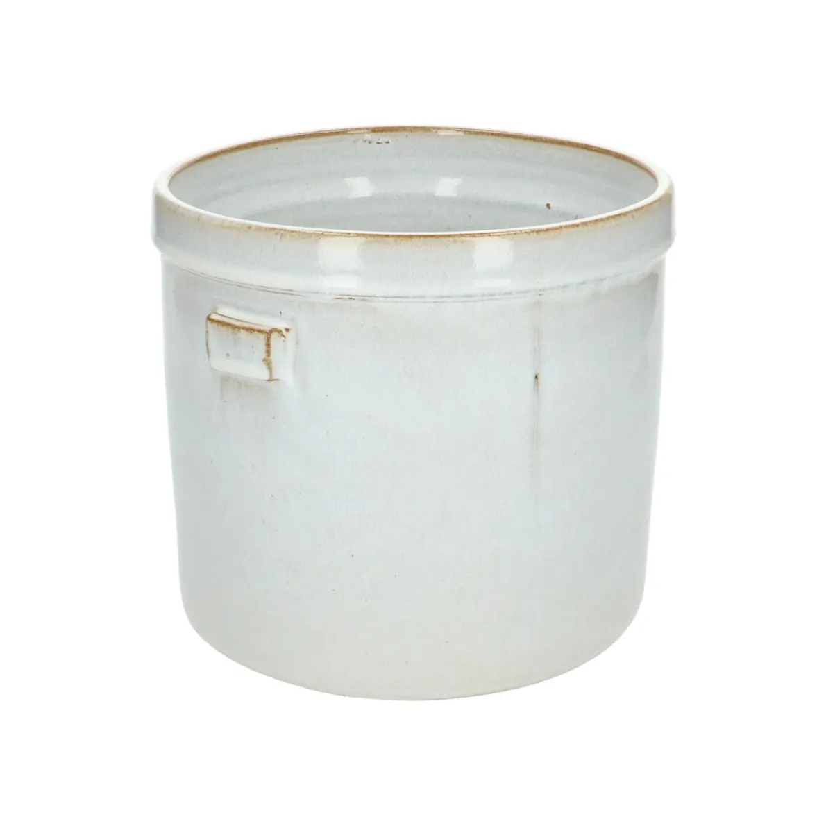 Een mooie plant verdient een stijlvolle bloempot. Deze aardewerken pot heeft een mooie brede rand en door de kleine handvaten het uiterlijk van een kruik. Het zand- en bruinkleurige ‘reactieve’ glazuur geeft de pot een levendige uitstraling en maakt elke pot uniek.