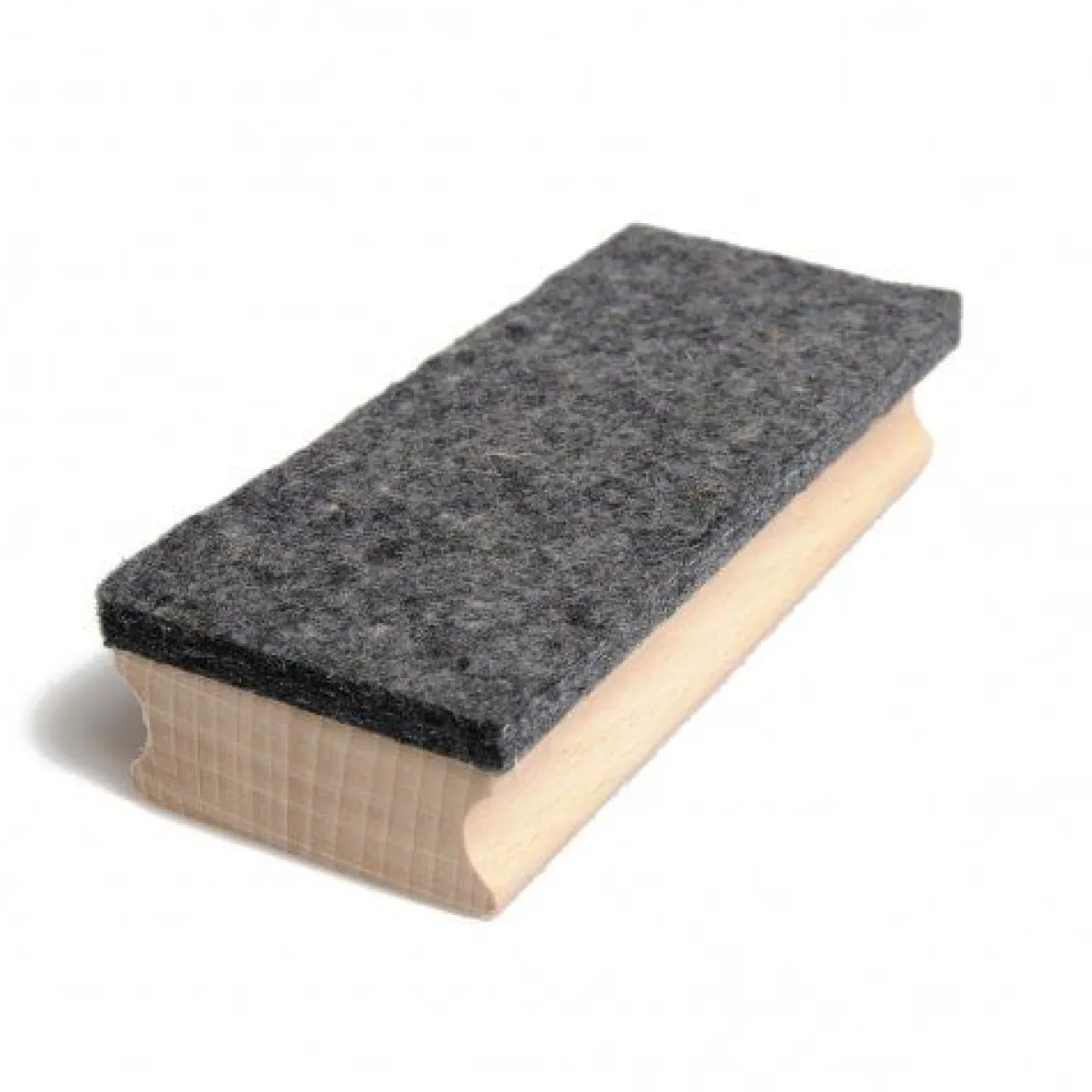 Bordenwisser van beukenhout met viltlaag. Ideaal voor het schoonvegen van krijtborden en leitjes. Afmetingen 12,5 x 5 x 3 cm.