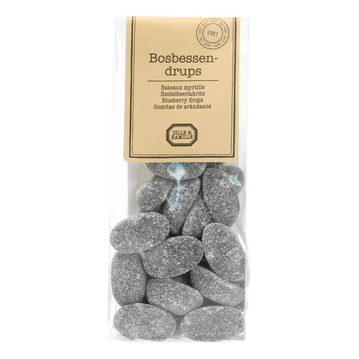 Ouderwets lekker! Zachte, zoete snoepjes met bosbessensmaak en een suikerlaagje.