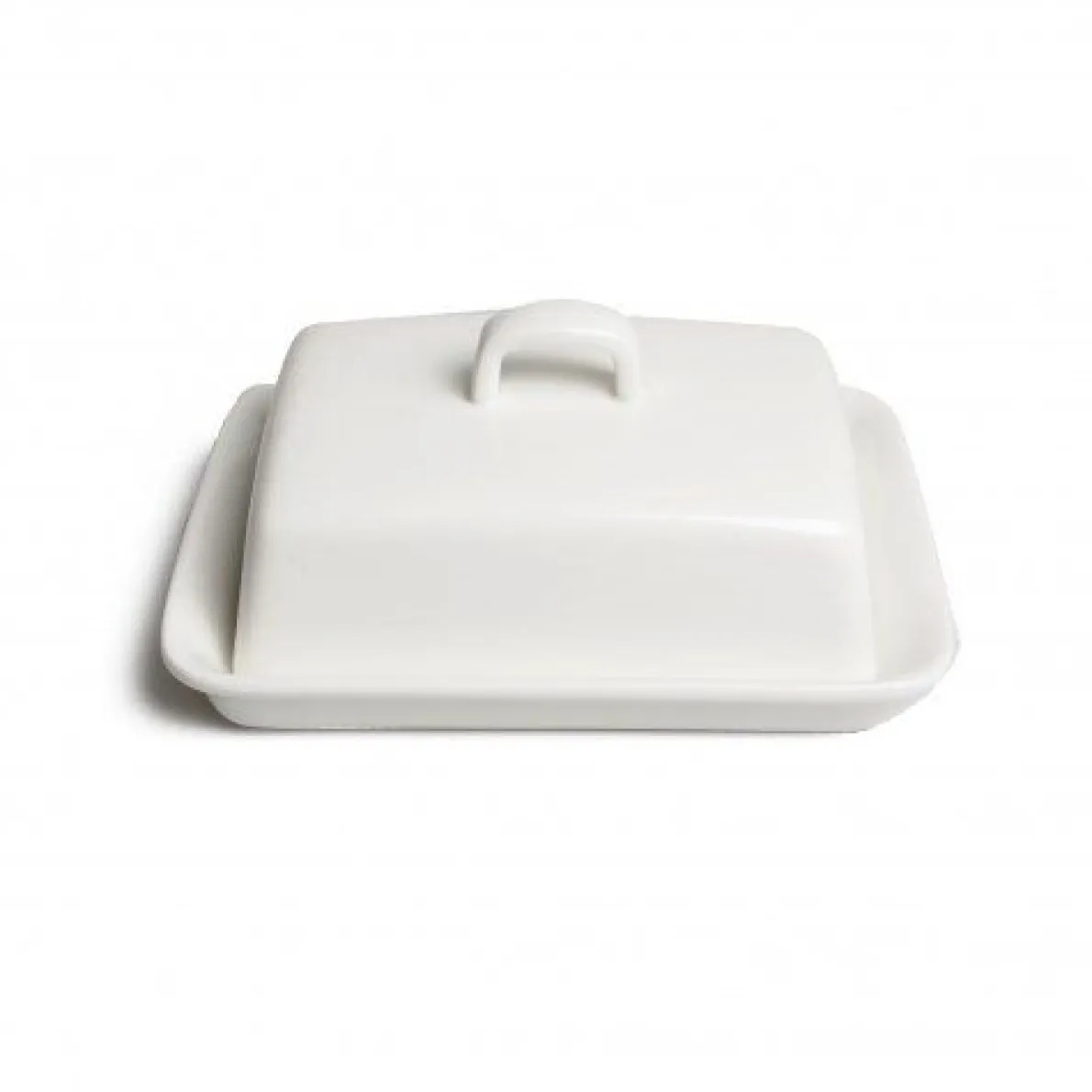 Rechthoekige botervloot, porselein, plateauvorm. Deksel met greepje. Geschikt voor pakje boter van 250 gr. Geschikt voor de afwasmachine en magnetron. Afmetingen 16 x 13 x 5 cm.