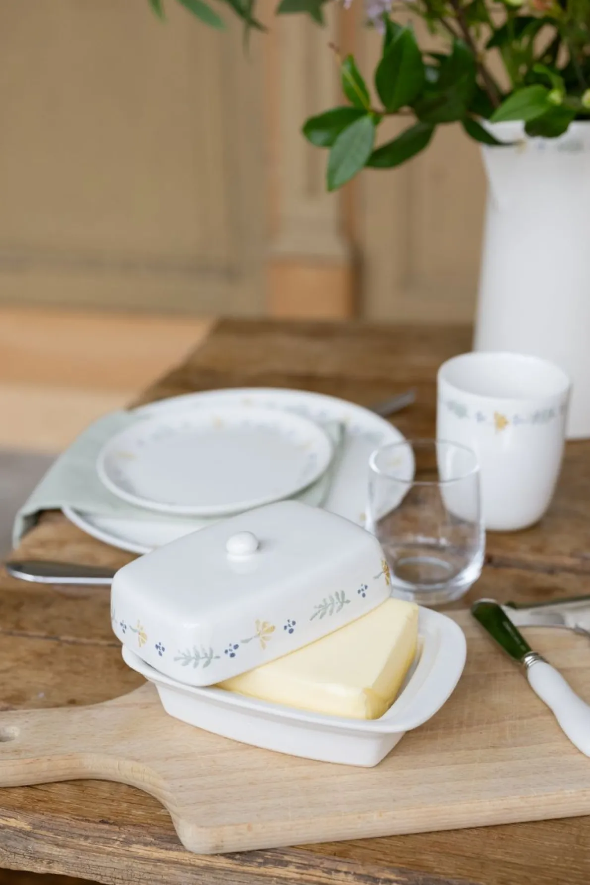 Serveer je boter in deze botervloot met strooitakjes voor een sfeervol gedekte tafel. Deze botervloot is onderdeel van een serviesserie. Een mooi servies van steengoed bedrukt met strooitakjes. Steengoed is een extra sterke soort aardewerk. Het dessin is een eigen ontwerp van Dille & Kamille. Erg mooi in combinatie met de andere onderdelen van dit servies.