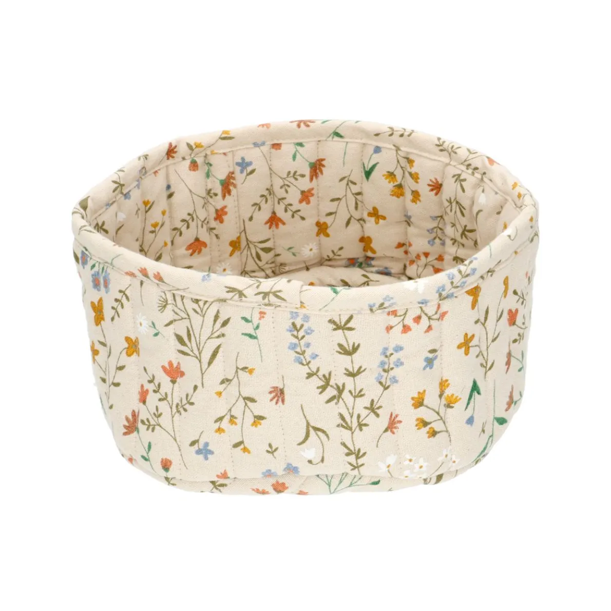 Met dit katoenen ‘mandje’ voor brood breng je meteen een zonnige sfeer op tafel. Het mandje is bedrukt met een strooidessin van verschillende veldbloemetjes op een ondergrond van ongebleekte katoen.Het broodmandje is gemaakt van GOTS gecertificeerd biologisch katoen. GOTS is een internationale standaard voor biologisch katoen en geeft aan dat ons bio-katoen op een verantwoorde manier wordt geteeld en verwerkt met respect voor mens en natuur.