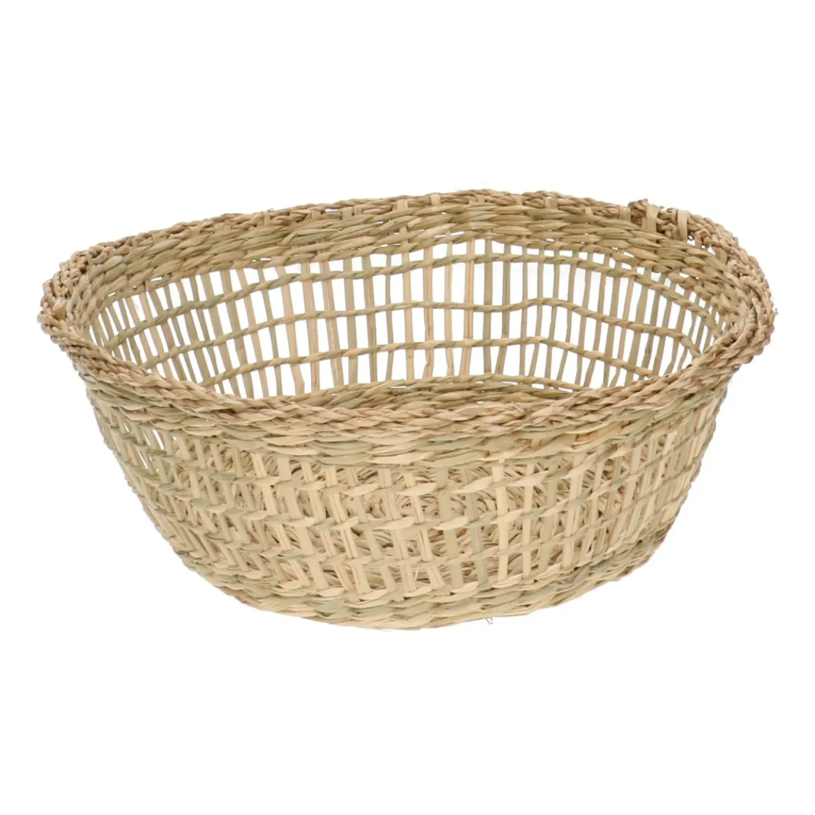 Rond broodmandje van open vlechtwerk, met de hand gemaakt van zeegras. Leuk om te combineren met onze andere artikelen van zeegras voor een sfeervol gedekte tafel.