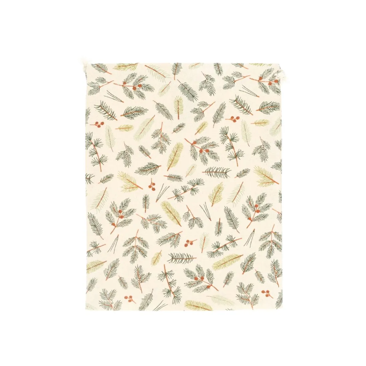 Lief katoenen zakje om bijvoorbeeld kerstcadeautjes in te verpakken, een duurzaam alternatief voor cadeaupapier. Zo is de ‘verpakking’ herbruikbaar: opnieuw voor cadeautjes maar ook voor bijvoorbeeld toiletspulletjes of om op reis mee te nemen. Het cadeauzakje is bedrukt met fijn getekende takjes op een offwhite ondergrond. Het zakje sluit met een dubbel wit trekkoord. Het cadeauzakje is gemaakt van GOTS gecertificeerd biologisch katoen. GOTS is een internationale standaard voor biologisch katoen en geeft aan dat ons bio-katoen op een verantwoorde manier wordt geteeld en verwerkt met respect voor mens en natuur.