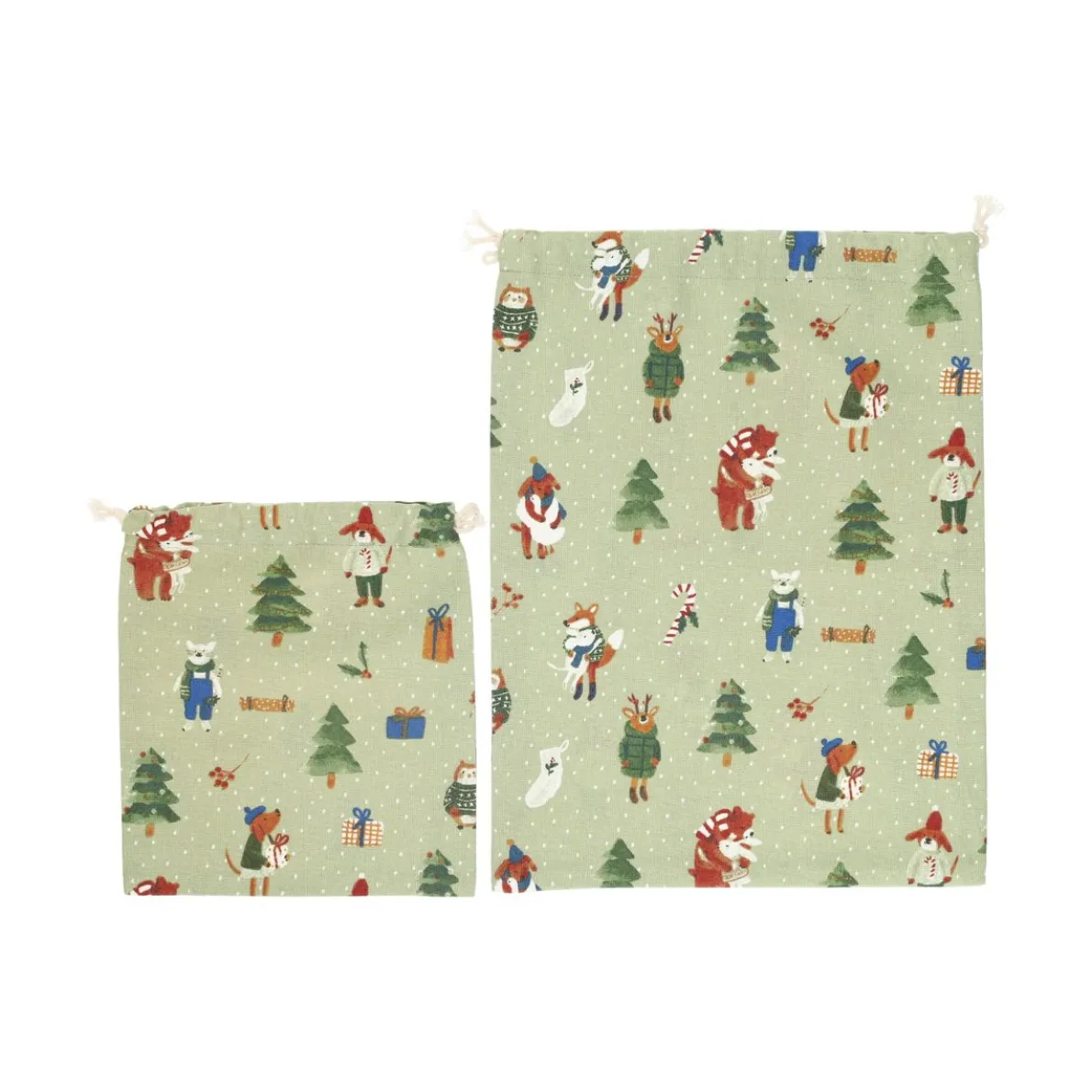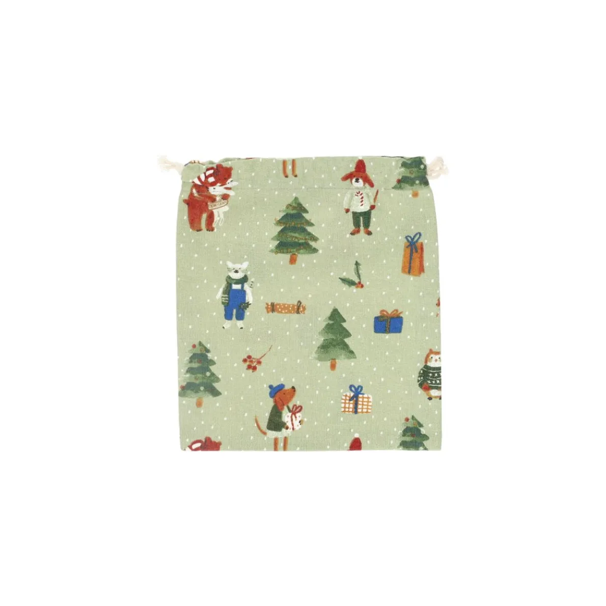 Lief katoenen zakje om bijvoorbeeld kerstcadeautjes in te verpakken, een duurzaam alternatief voor cadeaupapier. Zo is de ‘verpakking’ herbruikbaar: opnieuw voor cadeautjes maar ook voor bijvoorbeeld toiletspulletjes of om op reis mee te nemen. Het cadeauzakje is bedrukt met winter motieven op een groen ondergrond. Het zakje sluit met een dubbel wit trekkoord. Het cadeauzakje is gemaakt van GOTS gecertificeerd biologisch katoen. GOTS is een internationale standaard voor biologisch katoen en geeft aan dat ons bio-katoen op een verantwoorde manier wordt geteeld en verwerkt met respect voor mens en natuur.