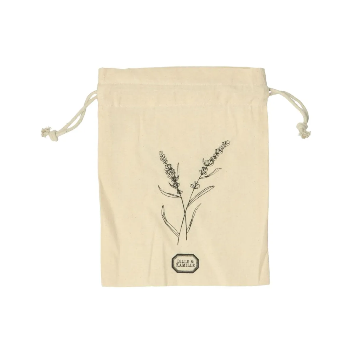 Zonde toch, dat de verpakking van een cadeautje altijd wordt weggegooid? Verpak je cadeautjes voortaan in dit herbruikbare écru zakje met een print van 2 takjes lavendel. De ontvanger kan het zelf hergebruiken voor cadeautjes of om iets in op te bergen. Het zakje sluit met een trekkoordje.