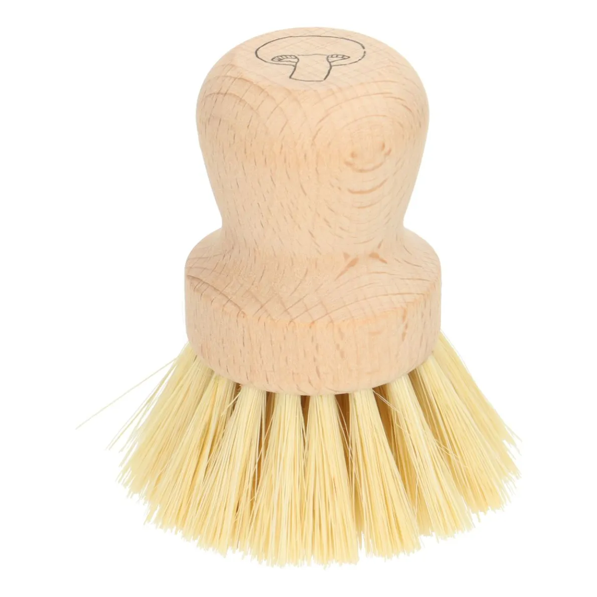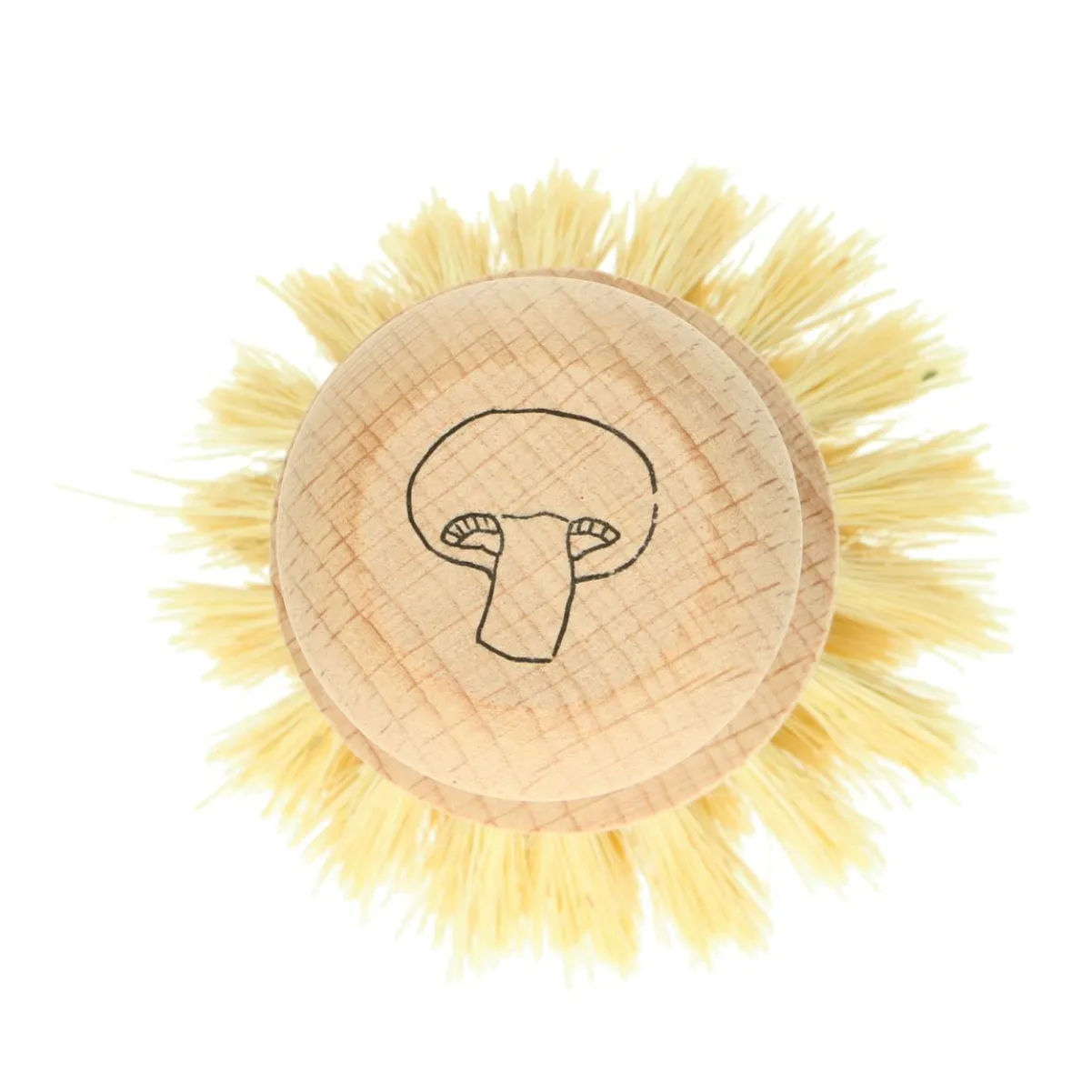 Borsteltje om champignons en andere paddenstoelen mee schoon te borstelen. Was paddenstoelen niet onder de kraan, dan nemen ze veel water op en verliezen ze hun smaak. Handvat is van beukenhout en het borsteltje van tampico, een bladvezel van de agave plant.