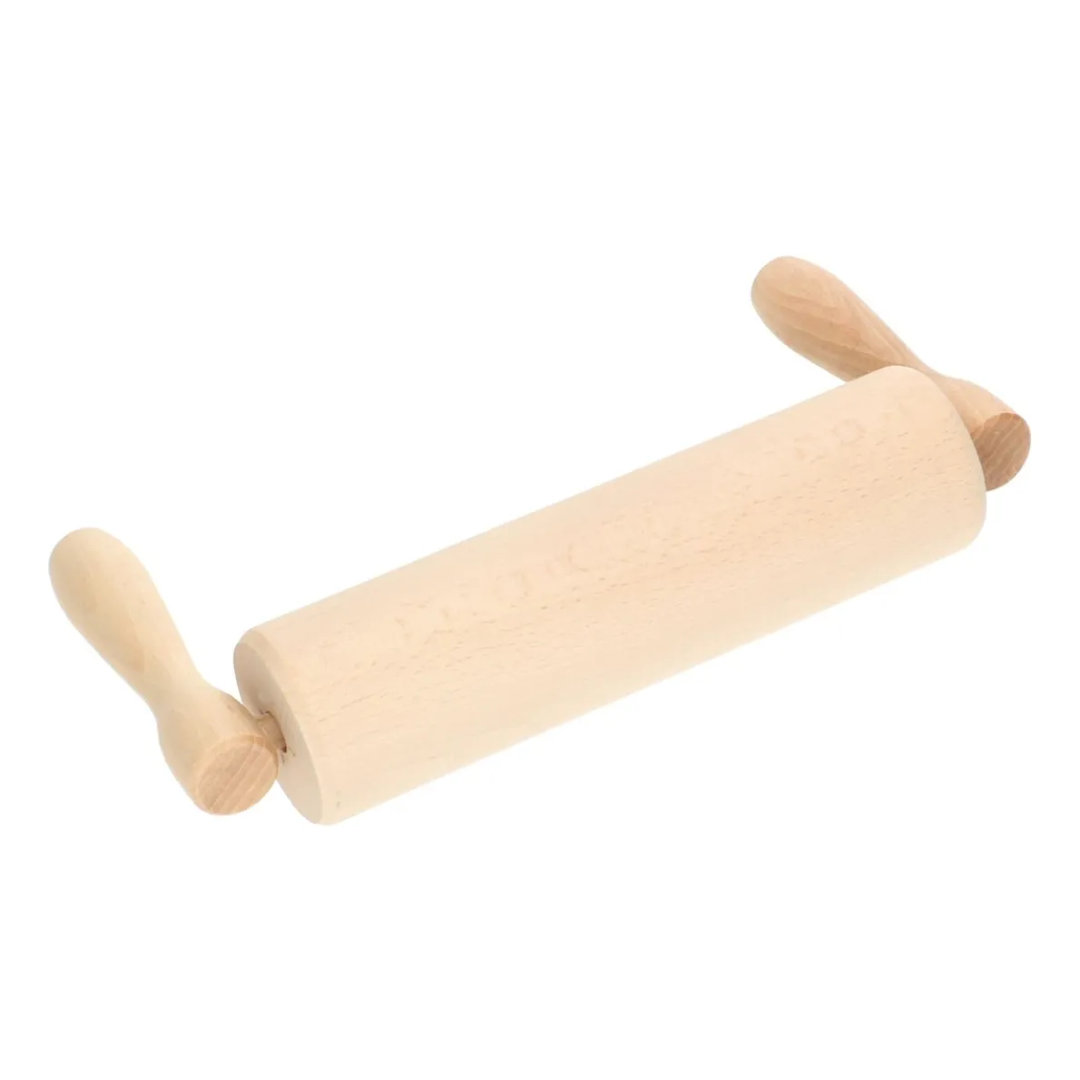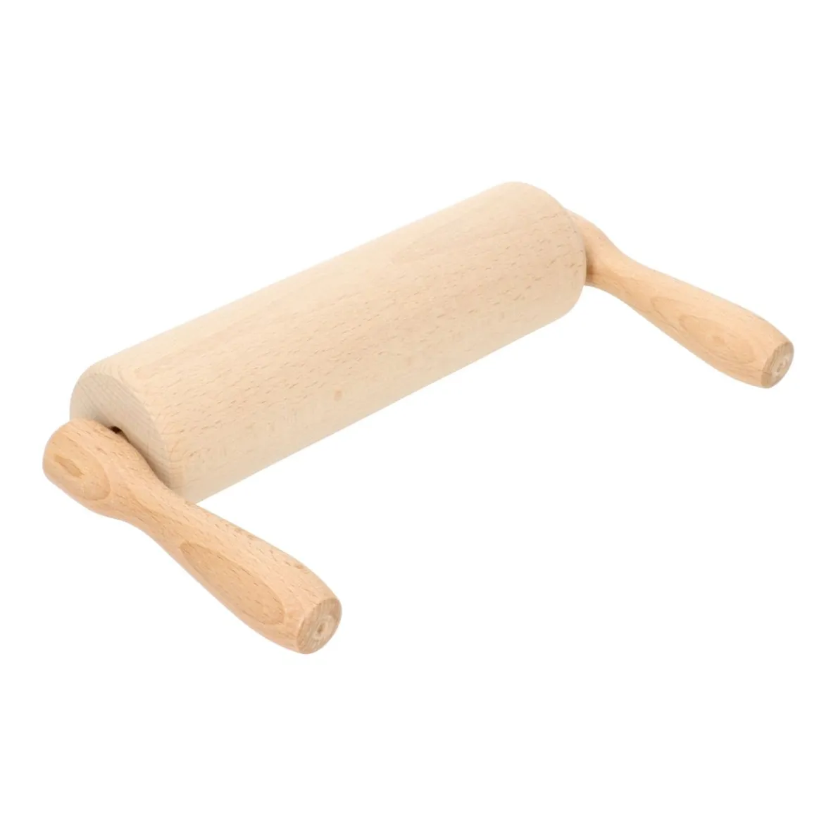 Deegroller van beukenhout. Door de opstaande grepen kun je beter druk zetten op het deeg en gaat het uitrollen een stuk lichter.