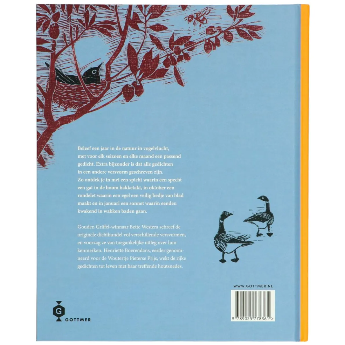 In de unieke kinderpoëziebundel ‘Dichter bij de seizoenen’ beleeft de lezer een jaar in de natuur in vogelvlucht. Voor elk seizoen en elke maand staat in deze sfeervolle bundel een passend gedicht. Wat deze gedichten extra bijzonder maakt, is dat ze allemaal in verschillende versvormen zijn geschreven. Naast de seizoensgedichten geeft de bundel ook uitleg over de verschillende versvormen en tips om zelf met taal te spelen. Bekroond illustrator Henriette Boerendans wekt de rijke gedichten tot leven met haar treffende houtsneden.’Dichter bij de seizoenen’ is een bijzondere samenwerking tussen prijswinnend auteur Bette Westera en topillustrator Henriette Boerendans. ‘Dichter bij de seizoenen’ is geschikt voor lezers van 9 jaar en ouder.