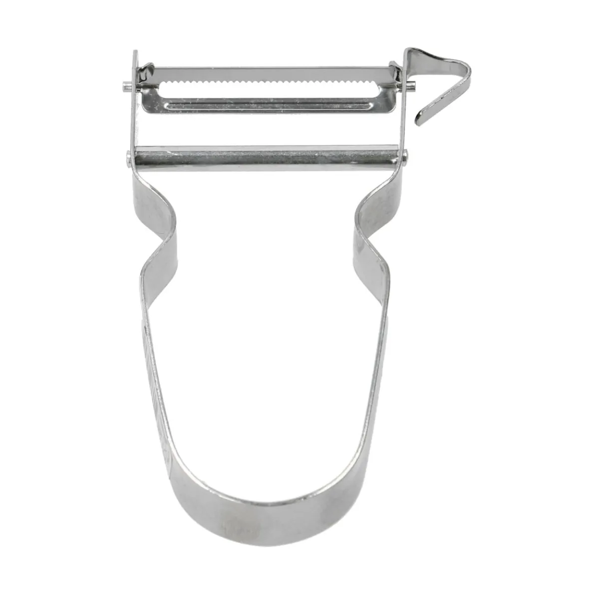 Dunschiller, roestvrij staal. Door het speciale gekartelde snijvlak geschikt voor het schillen van fruit en groente met een dun schilletje zoals kiwi’s of tomaten. Geschikt voor de afwasmachine. Afmetingen 11 x 5 cm