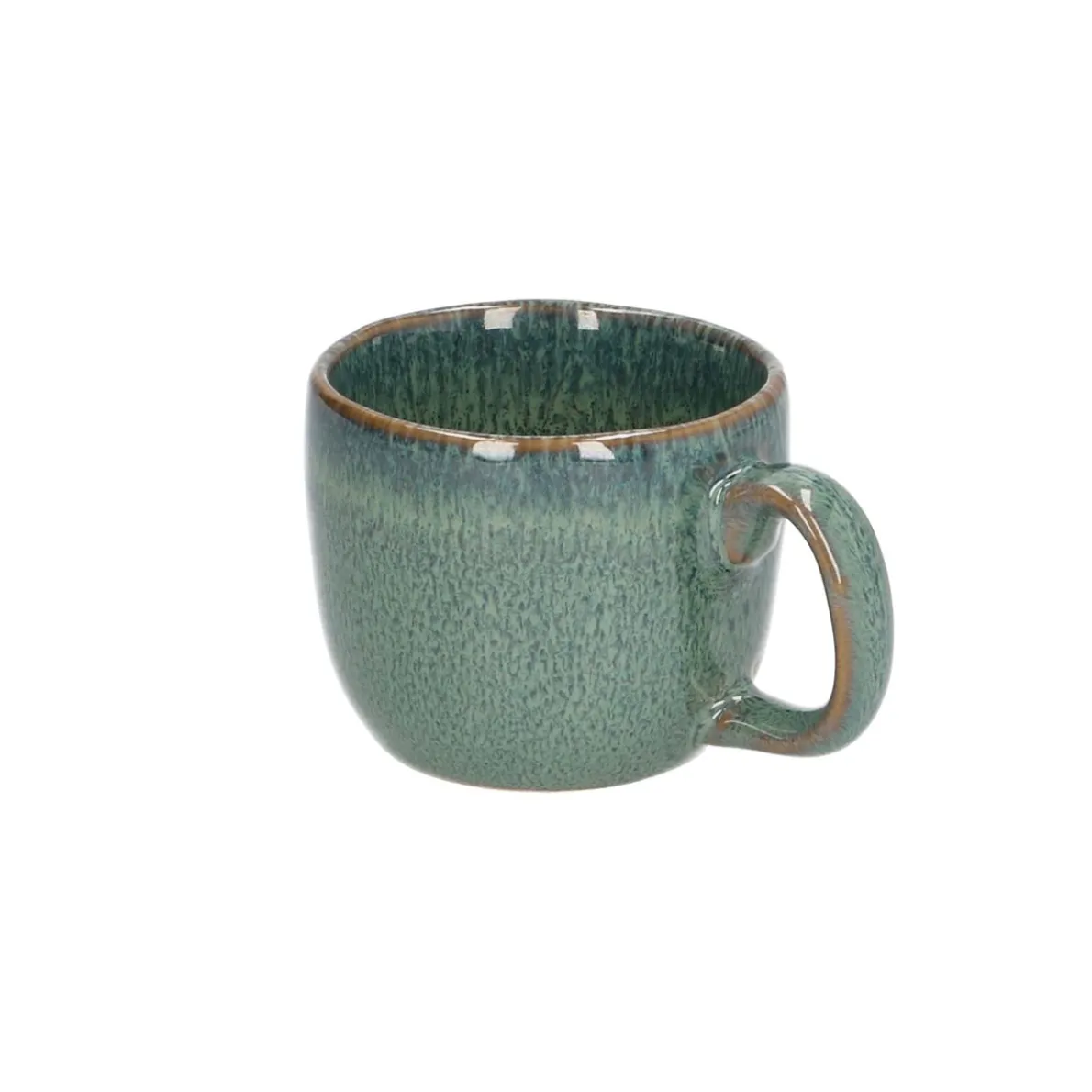 Dit prachtige steengoed servies in de tijdloze kleuren grijs en groen, heeft een reactieve glazuur. Door deze glazuur ontstaat een bijzonder kleurpatroon waardoor ieder item er uniek uitziet en het servies extra glans geeft aan een mooi gedekte tafel.
