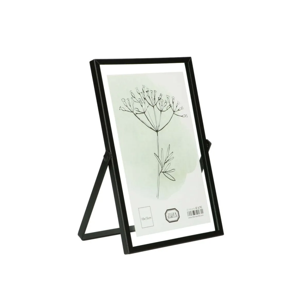 Lijstje met zwartmetalen omlijsting en 2 glaasjes die je er eenvoudig aan de bovenzijde in en uit schuift. Natuurlijk voor je mooiste foto’s, kaarten en tekeningen, maar ook prachtig met (zelf)gedroogde bloemen, veertjes en ander moois. Het dubbele glas geeft dit fotolijstje een transparante, retro uitstraling.