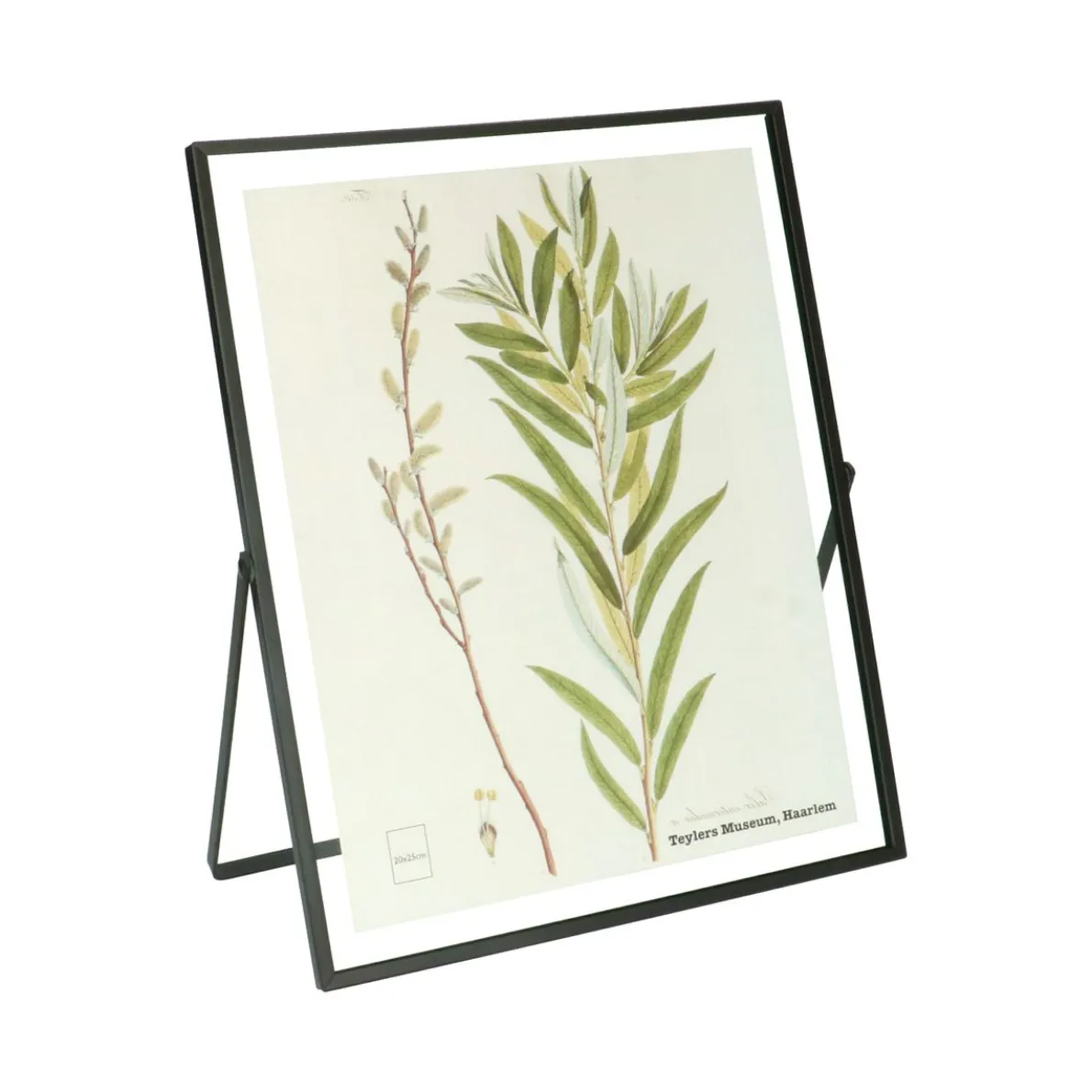 Lijstje met zwartmetalen omlijsting en 2 glaasjes die je er eenvoudig aan de bovenzijde in en uit schuift. Natuurlijk voor je mooiste foto’s, kaarten en tekeningen, maar ook prachtig met (zelf)gedroogde bloemen, veertjes en ander moois. Het dubbele glas geeft dit fotolijstje een transparante, retro uitstraling.