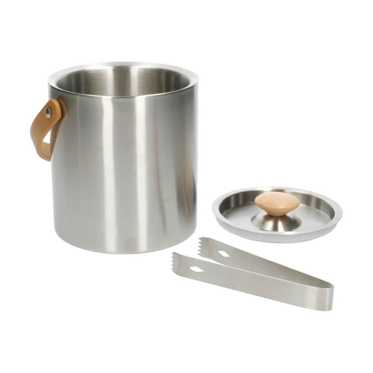 Stijlvolle ijsemmer waarin je ijsblokjes goed koud blijven tijdens een etentje of een gezellige borrel. Inclusief handige tang om de ijsblokjes makkelijk in de glazen te verdelen. De emmer is gemaakt van dubbelwandig RVS en heeft een siliconen ring aan de binnenkant, daardoor blijft ijs langer koud en komt er geen condensatie aan de buitenkant van de emmer. Bovendien voorkomt de siliconen ring dat hij kan lekken. Door het handvat en een knop van beukenhout mag deze ijsemmer zeker gezien worden.