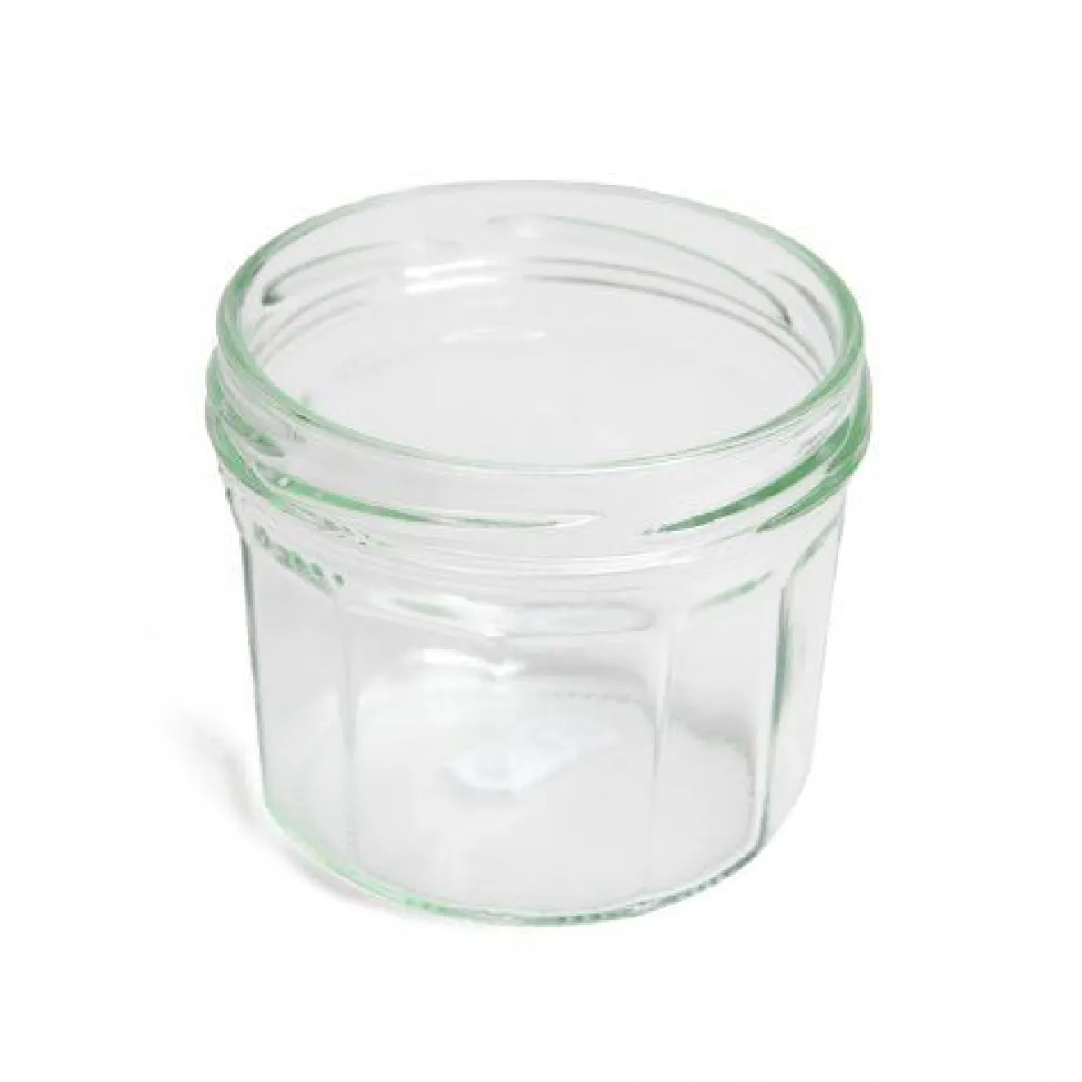 Glazen inmaakpot met facetten, zonder deksel. Voor het inmaken van groenten en fruit, het bereiden van jam, chutney etc. Tijdens het inmaakproces ontstaat een vacuüm, waardoor het deksel in het midden indeukt. Zo is te controleren of het inmaken geslaagd is. Het extra sterke glas is bestand tegen steriliseren in een hete oven en tegen hete vloeistoffen. Losse deksels verkrijgbaar in drie verschillende dessins. Inhoud 200 ml, hoogte ca. 7 cm, Ø 7,5 cm.