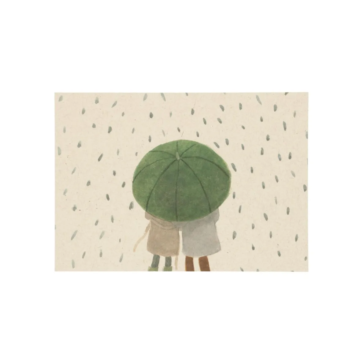 Stuur je mooiste wensen aan iedereen die je dierbaar is, bijvoorbeeld met deze vrolijke ansichtkaart met de afbeelding van twee mensen samen onder een paraplu. Leuk om te versturen, maar ook om aan een cadeaupakketje te hangen.