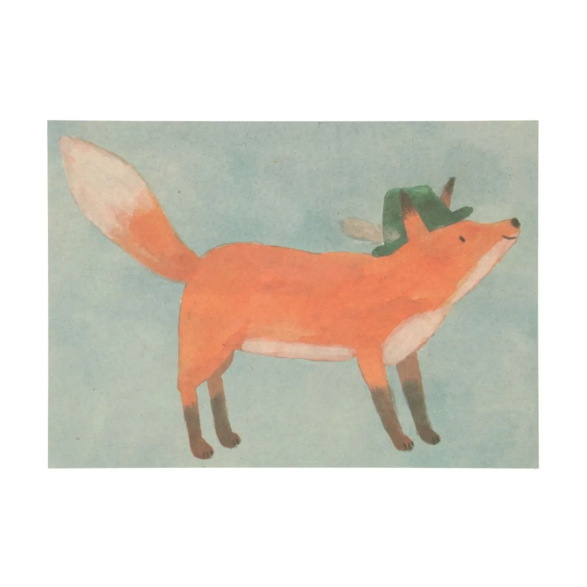 Stuur je mooiste wensen aan iedereen die je dierbaar is, bijvoorbeeld met deze vrolijke ansichtkaart met de afbeelding van een vos met een hoed. Leuk om te versturen, maar ook om aan een cadeaupakketje te hangen.Exclusief ontworpen voor Dille & Kamille. De kaart is gedrukt met bio inkt op papier gemaakt van bladeren en stengels zonder verspilling van water.