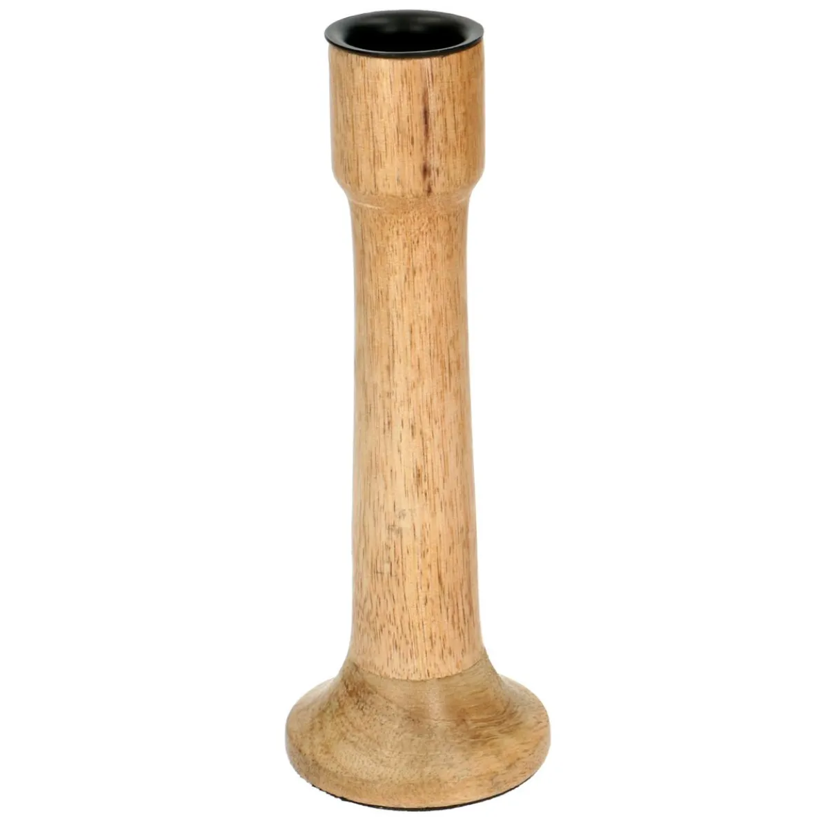 Mooi gemaakte, klassieke hoge kaarsenstandaard van gedraaid mangohout. De kandelaar is geschikt voor onze dinerkaarsen. Mangohout heeft een aantrekkelijke, warme uitstraling. Het is afkomstig van de mangoboom. Deze groeit in (sub)tropisch klimaat. Als de bomen geen vruchten meer geven, wordt het hout gebruikt om mooie dingen van te maken. Let op: laat een kaars niet onbewaakt branden en stop met het branden van de kaars als er nog ongeveer 2 cm over is boven de rand van de kandelaar.