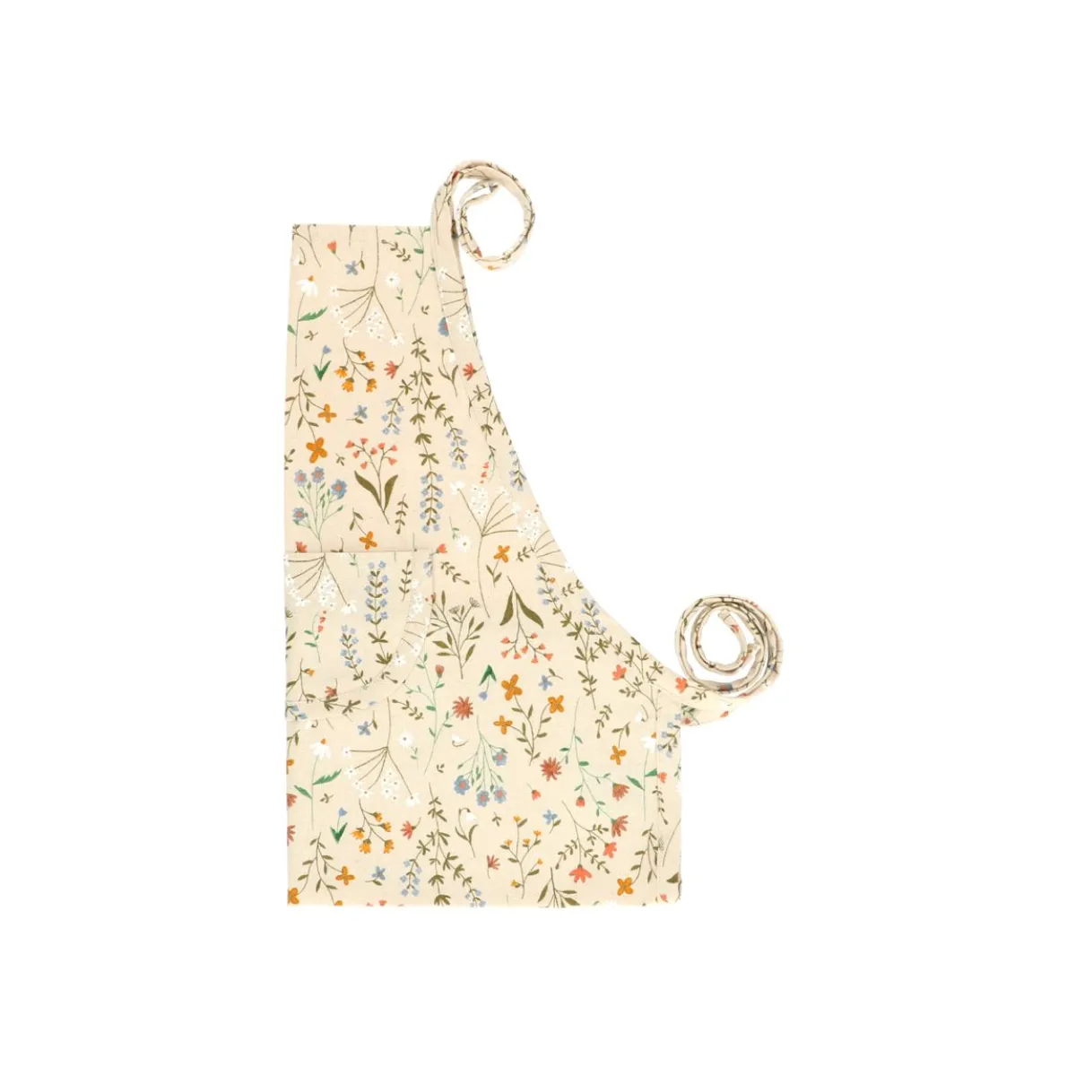 Ga je helpen koekjes bakken of iets ander lekkers klaarmaken? Met dit vrolijke schortje wordt het extra leuk én je kleren blijven netjes. De ovenwant is bedrukt met een strooidessin van verschillende veldbloemetjes op een ondergrond van ongebleekte katoen.De keukenschort is gemaakt van GOTS gecertificeerd biologisch katoen. GOTS is een internationale standaard voor biologisch katoen en geeft aan dat ons bio-katoen op een verantwoorde manier wordt geteeld en verwerkt met respect voor mens en natuur.
