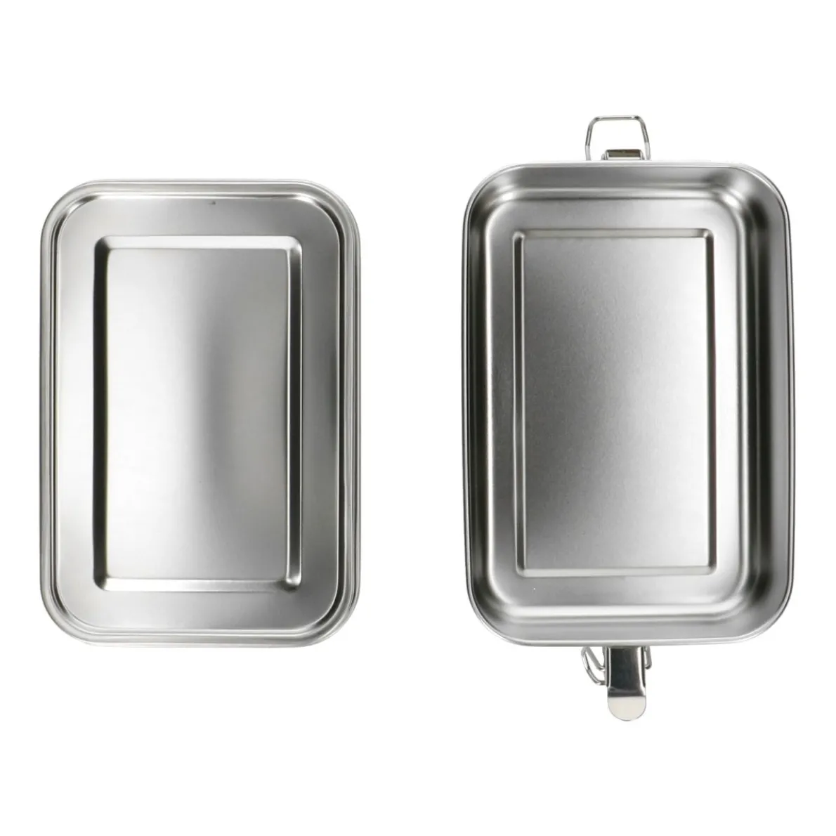 Eet je lunch in stijl! Neem je boterhammen, fruit of ander lunchgerechten met je mee naar school of werk in deze roestvrijstalen brooddoos: de ideale, robuuste en duurzame vervanging van de plastic broodtrommel. Dankzij de siliconen ring in de deksel lekt de broodtrommel niet. De kliksluiting aan beide kanten sluit de deksel goed en stevig af. De doos mag in de vriezer en zonder deksel ook in de oven. Daarnaast kun je ‘m zeer gemakkelijk schoonmaken, want hij kan gewoon in de afwasmachine! Verkrijgbaar in 5 verschillende maten. Let op: niet geschikt voor de magnetron! Tip: mooi te combineren met onze RVS water- en thermosflessen!