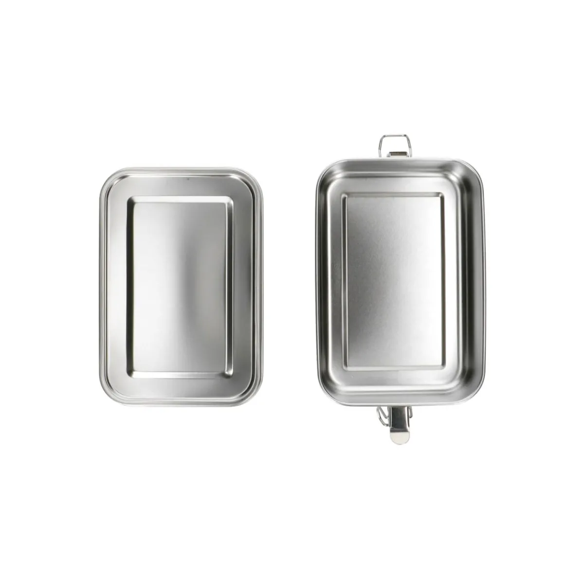 Eet je lunch in stijl! Neem je boterhammen, fruit of ander lunchgerechten met je mee naar school of werk in deze roestvrijstalen brooddoos: de ideale, robuuste en duurzame vervanging van de plastic broodtrommel. Dankzij de siliconen ring in de deksel lekt de broodtrommel niet. De kliksluiting aan beide kanten sluit de deksel goed en stevig af. De doos mag in de vriezer en zonder deksel ook in de oven. Daarnaast kun je ‘m zeer gemakkelijk schoonmaken, want hij kan gewoon in de afwasmachine! Verkrijgbaar in 5 verschillende maten. Let op: niet geschikt voor de magnetron! Tip: mooi te combineren met onze RVS water- en thermosflessen!
