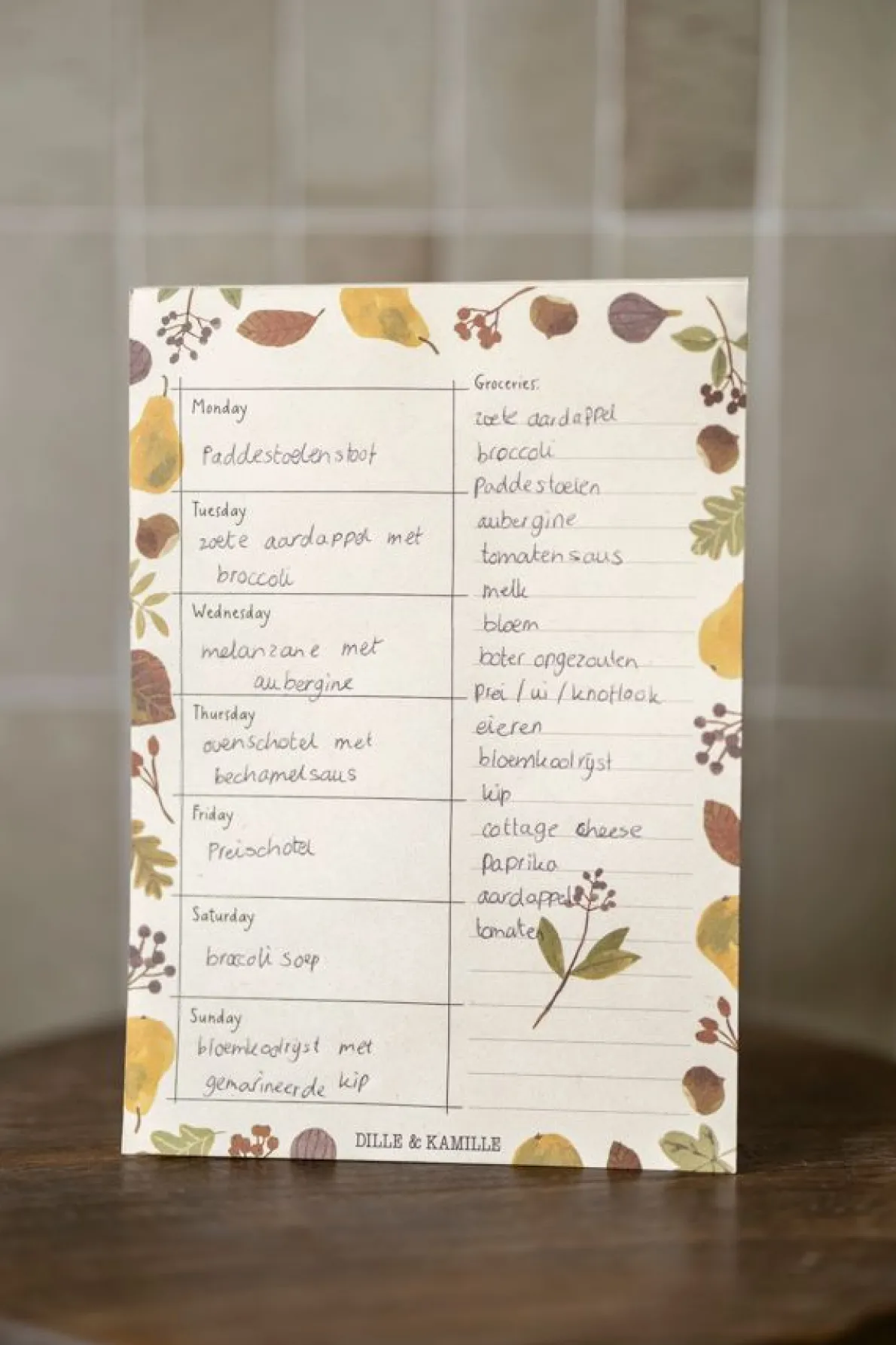 Of je nu graag kookt of kookt omdat het moet, gezond en gevarieerd eten willen we allemaal. Iedere dag iets verzinnen en boodschappen doen kost veel tijd. Op deze menuplanner noteer je al je maaltijden voor de hele week. Gebruik het handige lijstje rechts op de planner voor je boodschappen. Op elke pagina staat een week. Het papier voor deze planner is gemaakt van plantaardig oogstafval, er zijn dus geen bomen voor gekapt. Normaal gesproken worden deze resten verbrand, door er papier van te maken, wordt veel CO2-uitstoot bespaard. Het papier is bedrukt met bio-inkt, zonder watergebruik of giftige uitstoot.