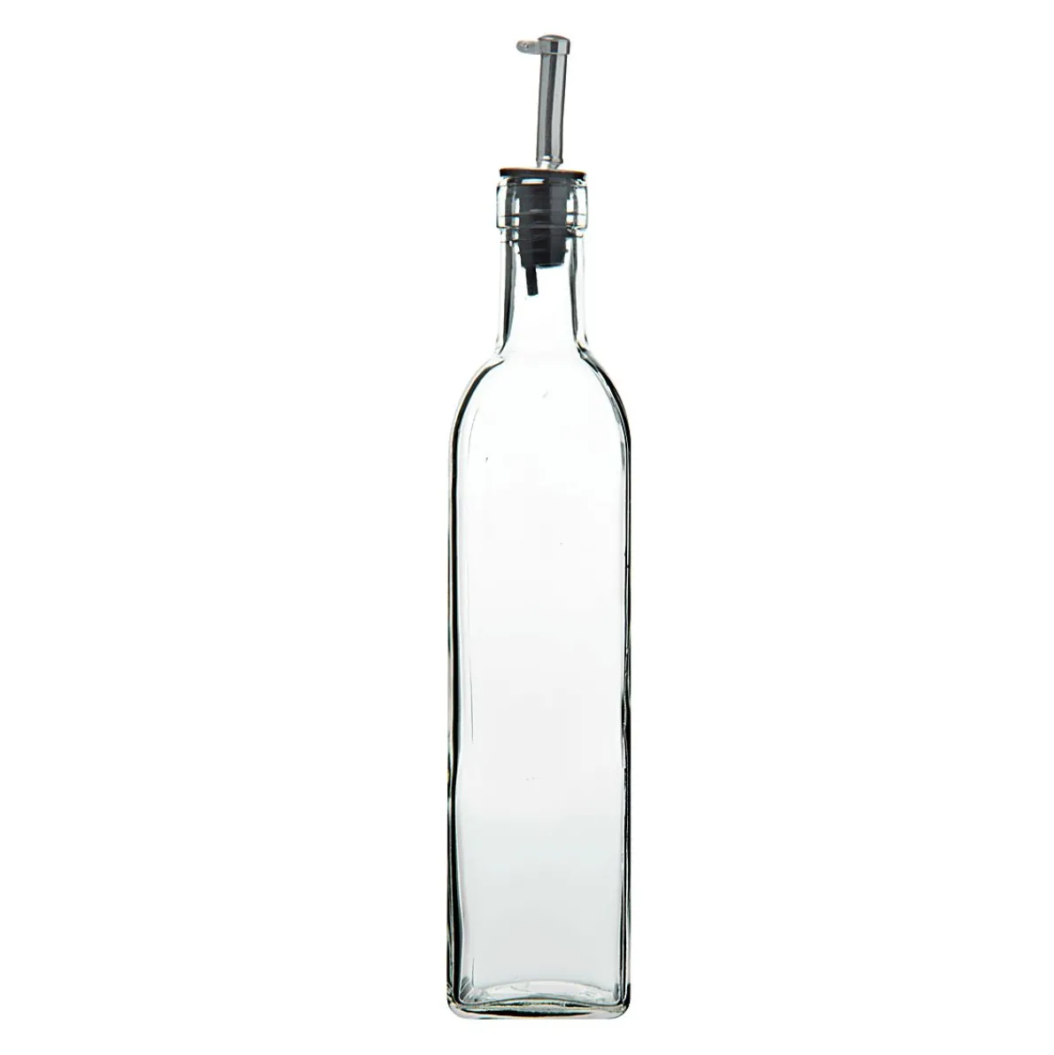 Elegante glazen fles met roestvrij stalen schenkdop. Voor olie, azijn, dressings etc..