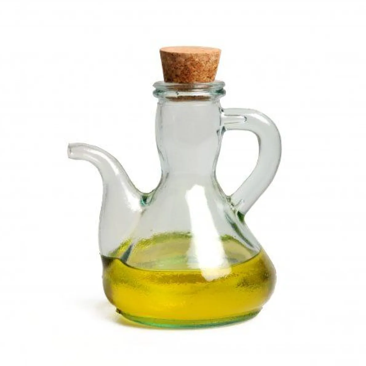 Rustiek kannetje met kurk, oortje en elegant schenktuitje. 100% gerecycled glas. De groene kleur ontstaat door het opnieuw smelten van wit glas. Omdat het glas op een lagere temperatuur wordt verwerkt is het energiebesparend en minder luchtvervuilend. Omdat dit een ambachtelijk product is kunnen kleur, dikte en formaat van glas tot glas iets verschillen. Ook kunnen er kleine luchtbelletjes in het glas te zien zijn. Geschikt voor de afwasmachine. Totale hoogte 15,5 cm, totaal breedte 12 cm. Ø onderkant 8,5 cm.