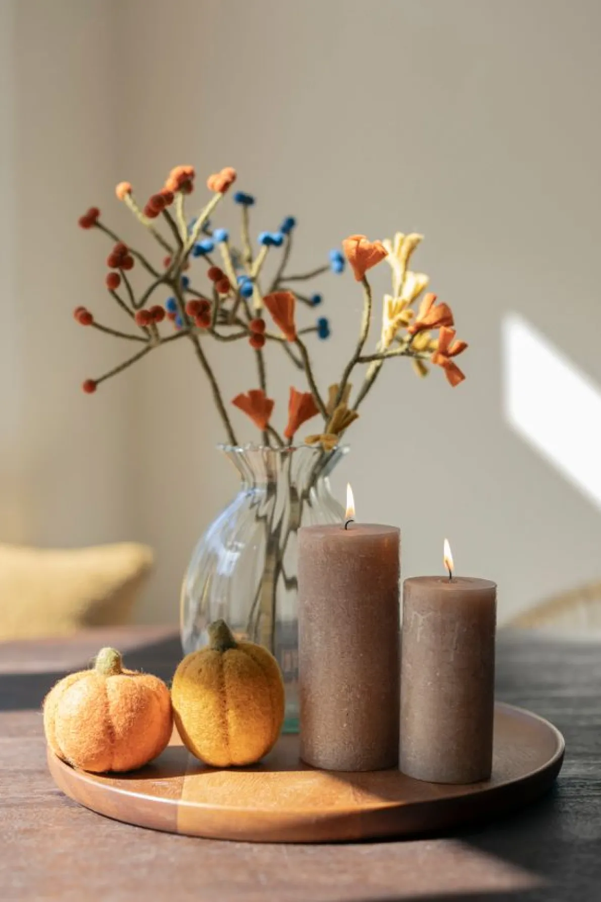 De herfst is hét seizoen om het binnen extra gezellig te maken. Met deze staande pompoen van vilt bijvoorbeeld. Hiermee maak je zo een knus en sfeervol herfsthoekje in je huis! Combineer de pompoen bijvoorbeeld met andere vilten figuurtjes en eigen herfstige natuurvondsten zoals kastanjes en mooi verkleurde bladeren. Omdat dit een handgemaakt product is, kunnen de afmetingen en kleuren van pompoen tot pompoen enigszins verschillen. Deze pompoen is speciaal ontworpen voor Dille & Kamille en met de hand gemaakt door vrouwen in Nepal, van Nieuw-Zeelandse schapenwol. Onze vaste leverancier van prachtige Fair Trade vilten artikelen helpt hen om hun sociale en economische positie en die van hun gezin te verbeteren. Dit biedt, behalve een vast inkomen, ook een veilige werkplek.