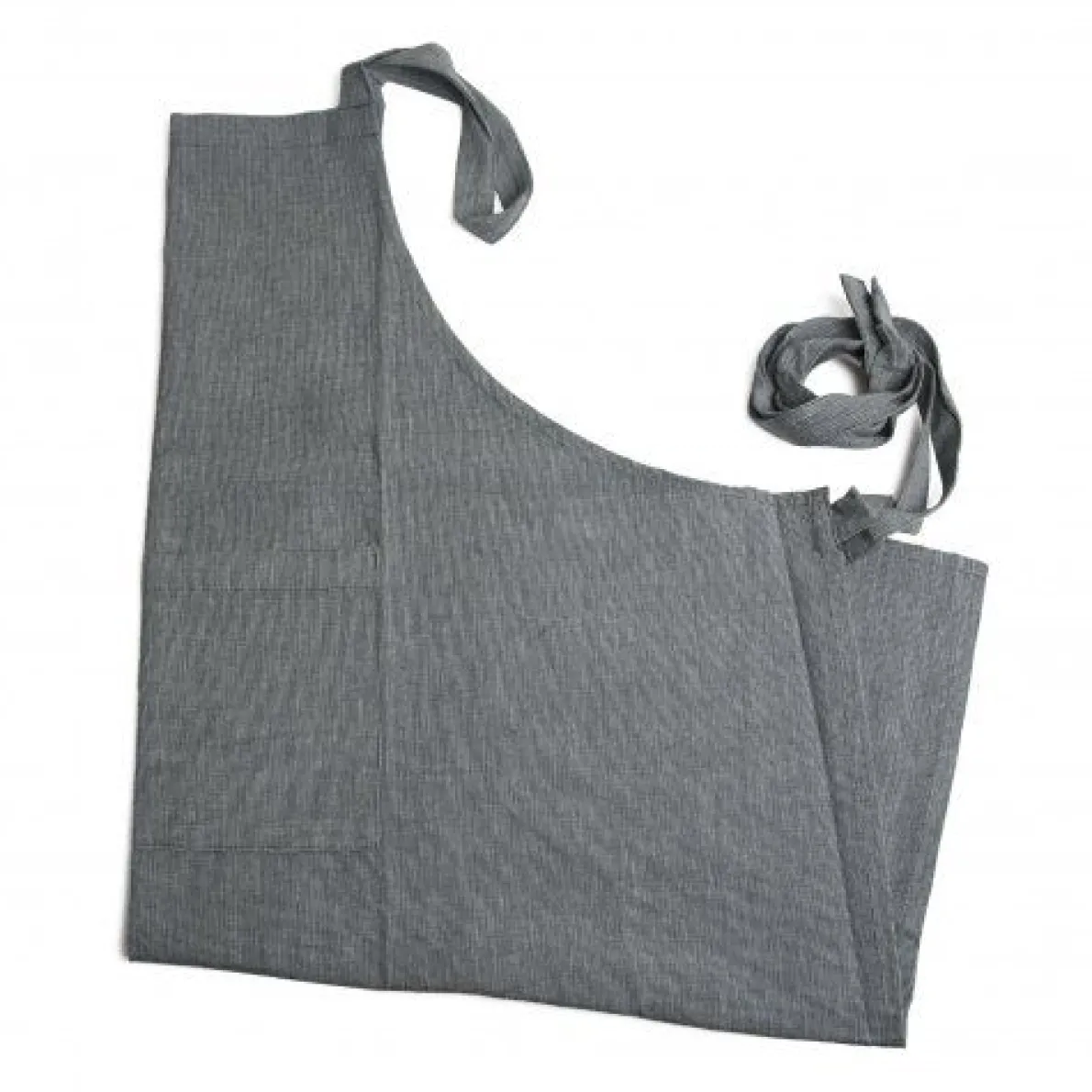 Schort met een zak aan de voorzijde, kleur donkergrijs gemêleerd. Door de grotere lengte en langere nek- en taillebanden is deze schort extra geschikt voor mannen – en langere vrouwen! Katoen, wassen op 40° C, kan gestreken worden, niet bleken. Donkere kleuren de eerste keer apart wassen. Afmetingen 95 x 90 cm.