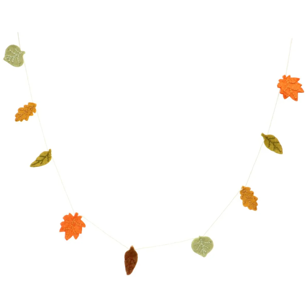 De herfst is hét seizoen om het binnen extra gezellig te maken. Met deze vilten slinger bijvoorbeeld, versierd met blaadjes in warme herfstkleuren. Hiermee maak je zo een knus en sfeervol herfsthoekje in je huis! Leuk aan een mooie gevonden tak uit het bos of de tuin, op tafel of de schouw, gecombineerd met andere vilten figuurtjes en eigen herfstige natuurvondsten zoals kastanjes en mooi verkleurde bladeren. Omdat dit een handgemaakt product is, kunnen de afmetingen en kleuren van slinger tot slinger enigszins verschillen. Deze slinger is speciaal ontworpen voor Dille & Kamille en met de hand gemaakt door vrouwen in Nepal, van Nieuw-Zeelandse schapenwol. Onze vaste leverancier van prachtige Fair Trade vilten artikelen helpt hen om hun sociale en economische positie en die van hun gezin te verbeteren. Dit biedt, behalve een vast inkomen, ook een veilige werkplek.