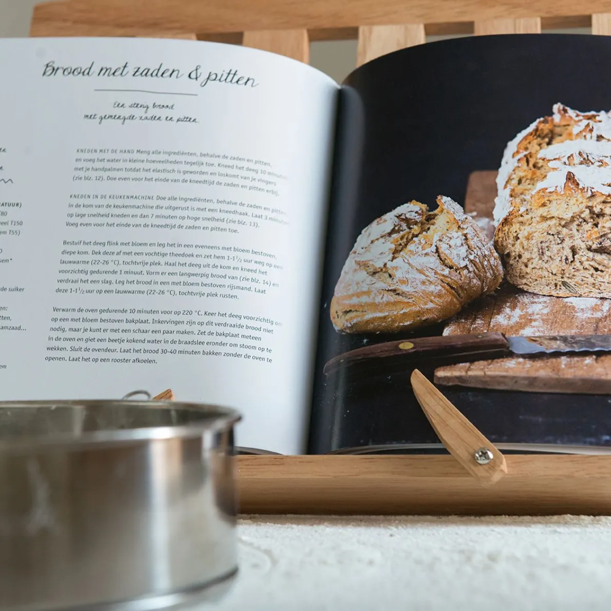 Standaard voor (kook)boek, om tijdens het koken altijd het juiste recept opengeslagen te hebben, of gewoon om een mooi boek te presenteren.