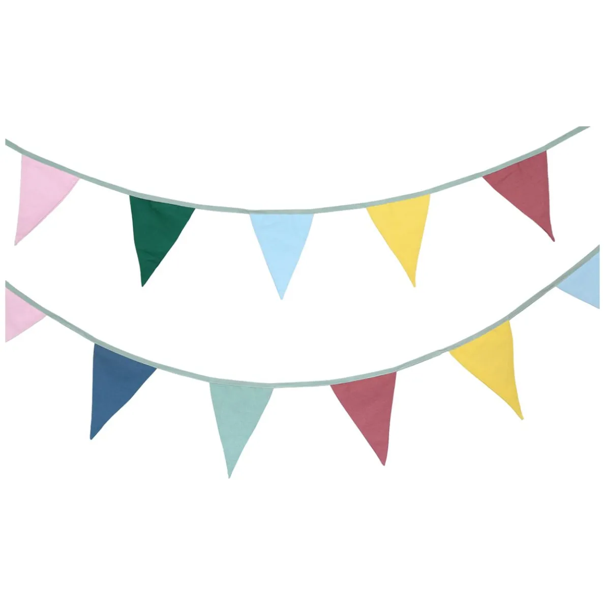 Maak van elke dag een feestje met deze vrolijke vlaggenslinger! Met vlaggetjes in verschillende feestelijke kleuren. De slinger is gemaakt van bio-katoen, dus gaat lekker lang mee. Ook leuk om de speel- of kinderkamer mee op te vrolijken.