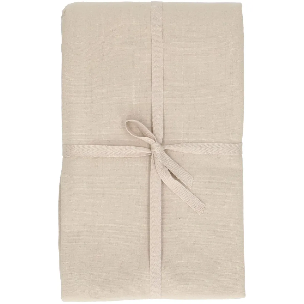 Kiezelkleurig tafelkleed, geschikt voor een rechthoekige tafel voor zes tot acht personen.