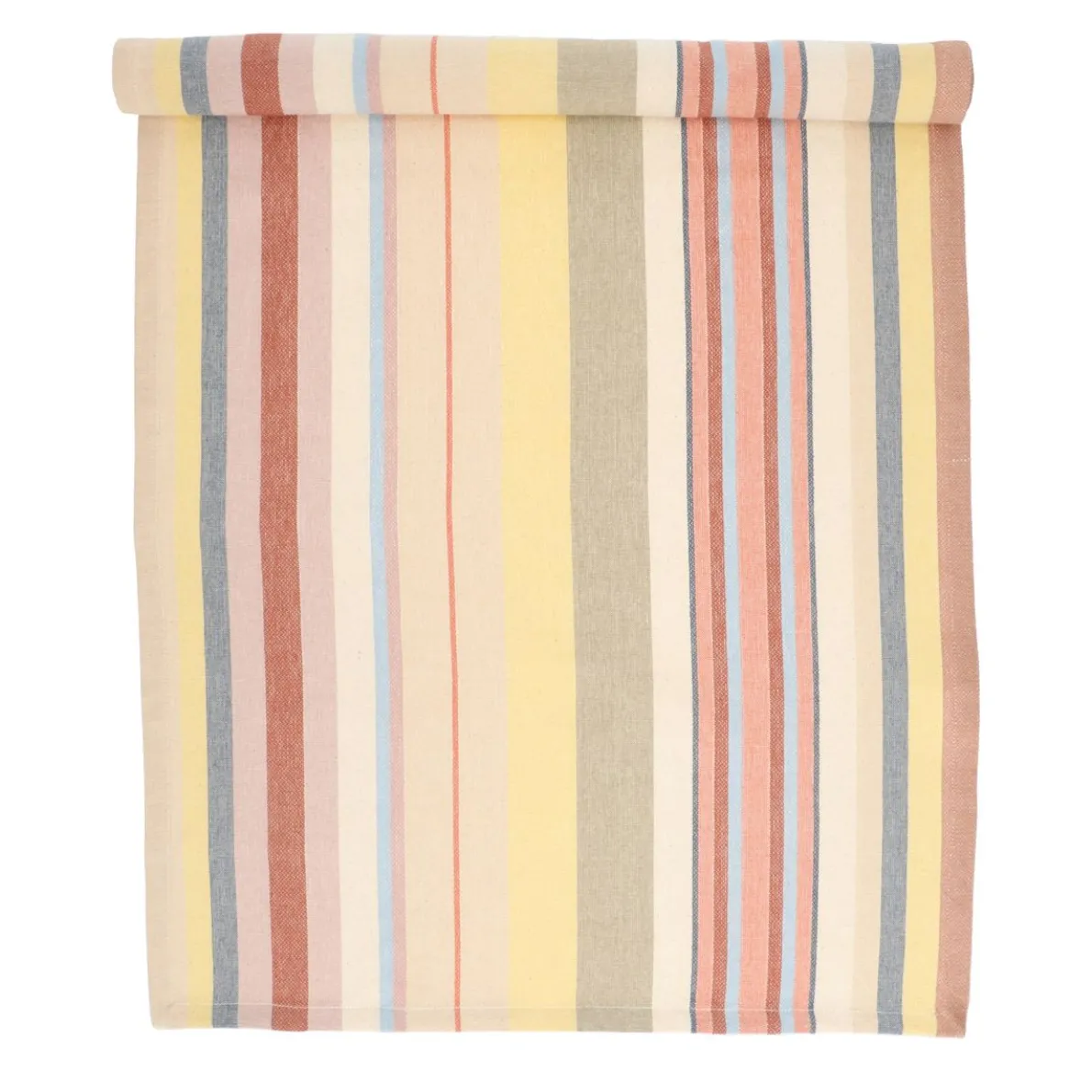 Met een tafelloper dek je de tafel extra sfeervol en gastvrij. Deze loper bedrukt met meerdere, ingeweven strepen in zomerse tinten is ideaal voor dagelijks gebruik, maar ook leuk om je tafel mee te dekken voor een gezellig etentje met vrienden. Mooi met een bijpassend tafelkleed en servetten, op een effen tafelkleed of om zo op tafel te leggen. Deze tafelloper is gemaakt van GOTS gecertificeerd biologisch katoen. GOTS is een internationale standaard voor biologisch katoen en geeft aan dat ons bio-katoen op een verantwoorde manier wordt geteeld en verwerkt met respect voor mens en natuur.
