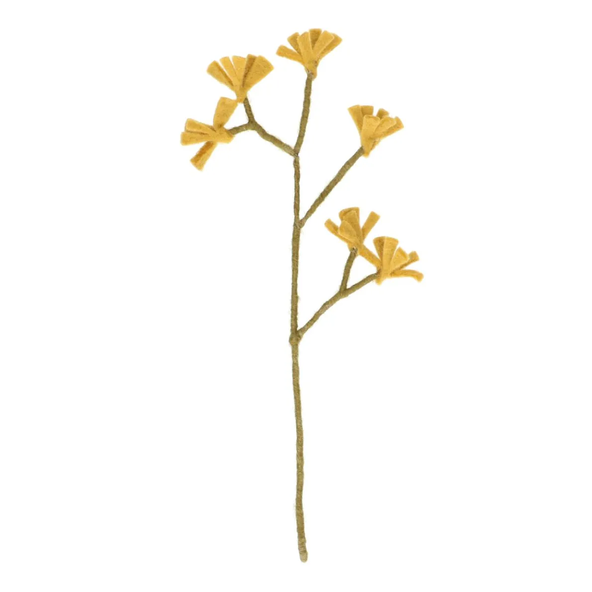 Met deze tak, een zgn. kangoeroepootje, van vilt haal je de natuur in huis. Leuk in een vaasje of als extra versiering op een feestelijk ingepakt cadeau. De vilten bloemen en takken zijn verkrijgbaar in verschillende kleuren en uitvoeringen. Omdat dit een handgemaakt product is, kunnen de afmetingen van tak tot tak enigszins verschillen. Door de metalen draad in de tak kun je hem in elke vorm buigen en blijft de tak in een vaas mooi rechtop staan. De tak is ontworpen door Dille & Kamille en met de hand gemaakt in Nepal. Onze vaste leverancier helpt vrouwen op het Nepalese platteland om hun eigen sociale en economische positie, en die van hun gezin, te verbeteren. Hij biedt de vrouwen, behalve een vast inkomen, ook een veilige werkplek, ondersteuning en begeleiding. Dille & Kamille helpt hier graag aan mee!