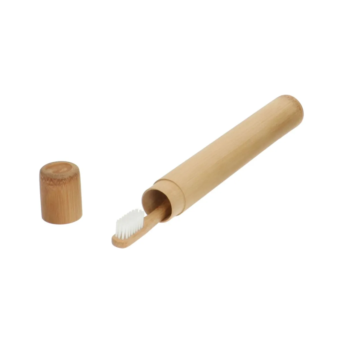 Stevige bamboe koker met dop, voor het opbergen van je tandenborstel, bijvoorbeeld om in je toilettas mee op reis te nemen.
