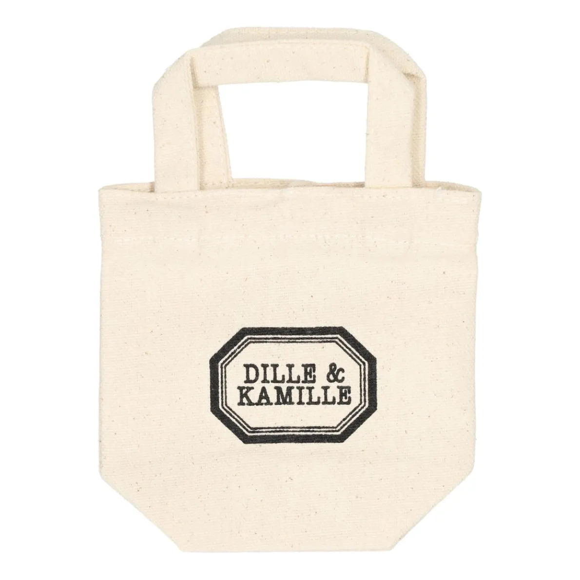 Hoe leuk is dat, een mini-uitgave van de enige echte canvas Dille-tas. Voor de pop, als herbruikbare ‘verpakking’ voor de Dille & Kamille cadeaukaart of gewoon een lief klein cadeautje, als opbergzakje voor kleine spulletjes…