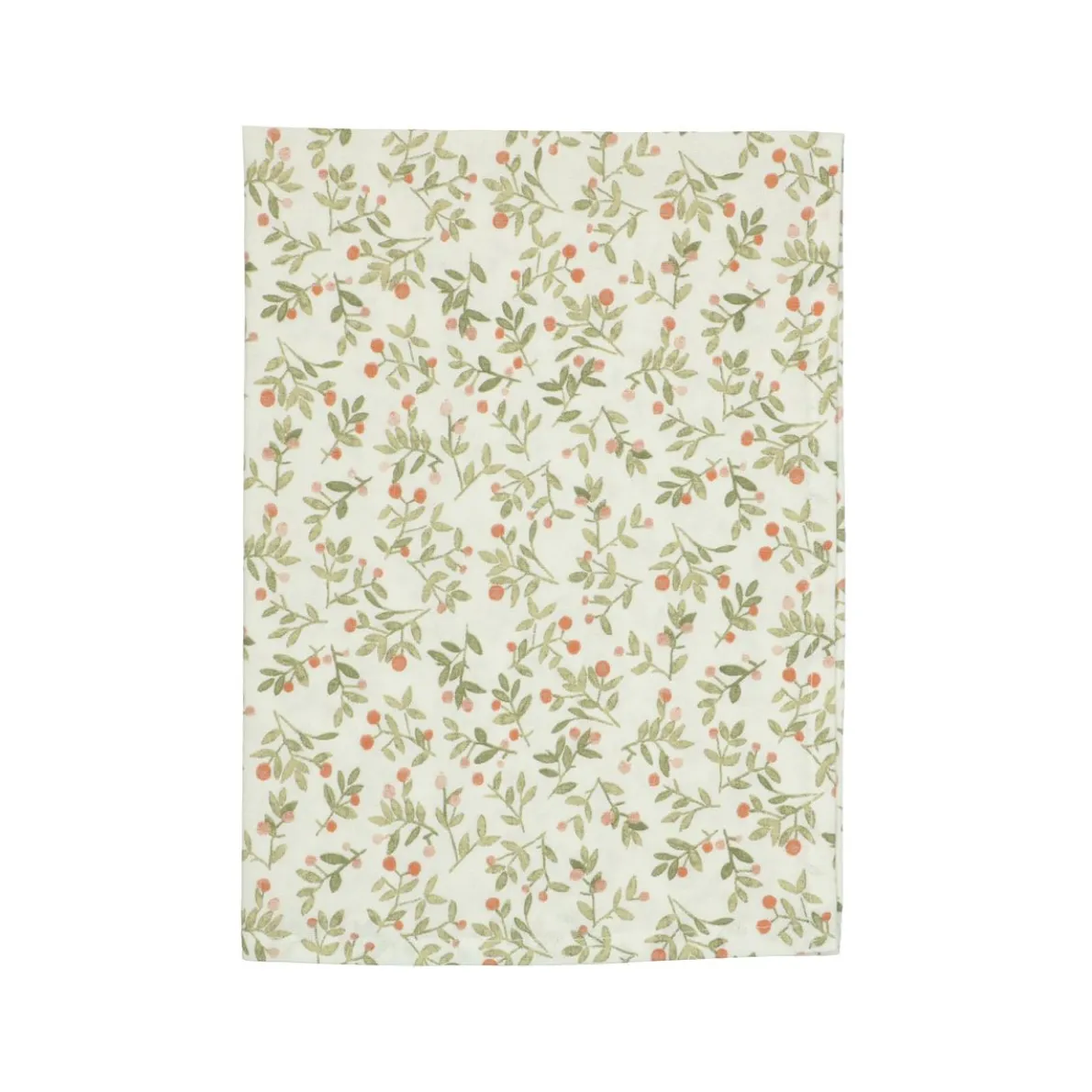 Deze theedoek met een vrolijke print van oranje besssen neemt vocht goed op. Voor een droge vaat en een nette keuken!