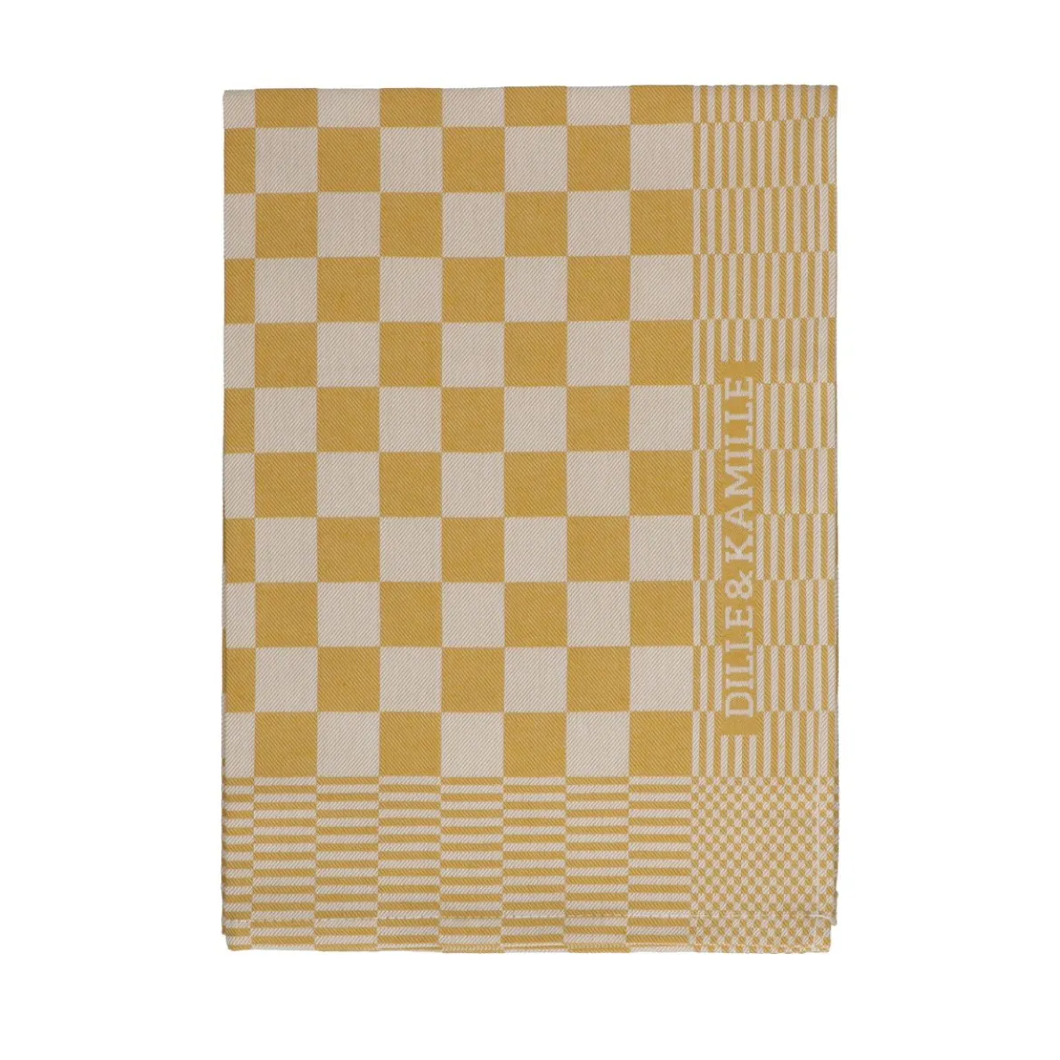 Deze nostalgisch geruite gele theedoek neemt vocht goed op. Hij zorgt voor een droge vaat en een nette keuken!